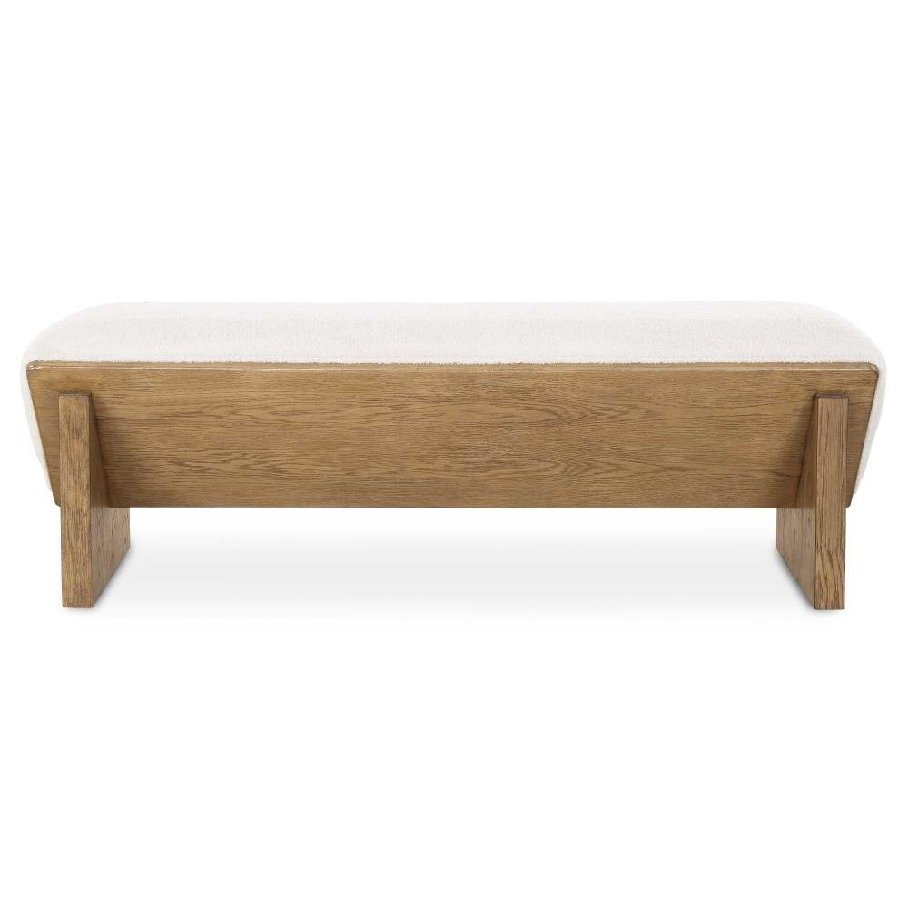 The Wedged Bench Is A Statement Piece Incorporating Art And Beauty Alike. The Waterfall Seat Features A Finely Textured Faux Sheepskin In Soft Ivory, Paired With A Sturdy Wooden Frame In Medium Toned Oak Veneer.