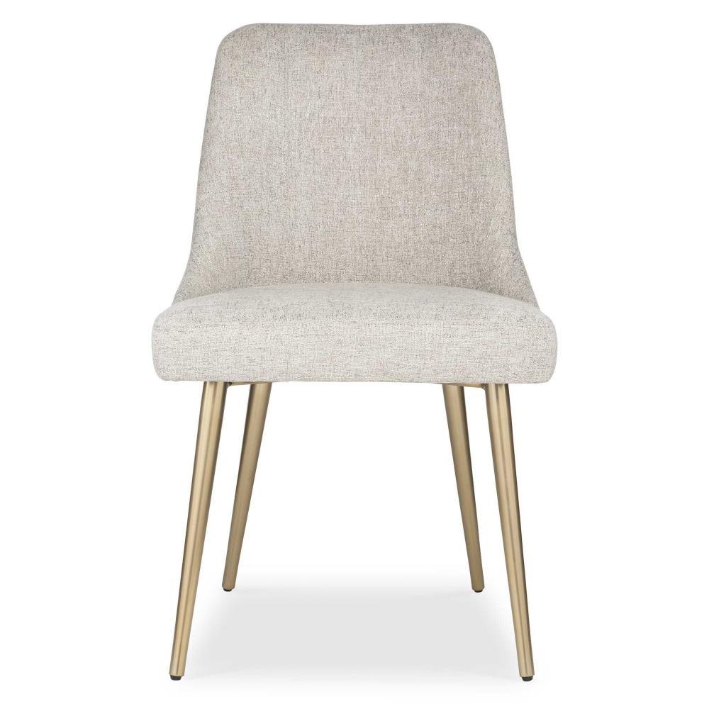 Gently Sloped Modern Lines Paired With Tapered Metal Legs In Brushed Gold. Upholstered In A Heathered Gray Polyester Fabric. Seat Height Is 19".