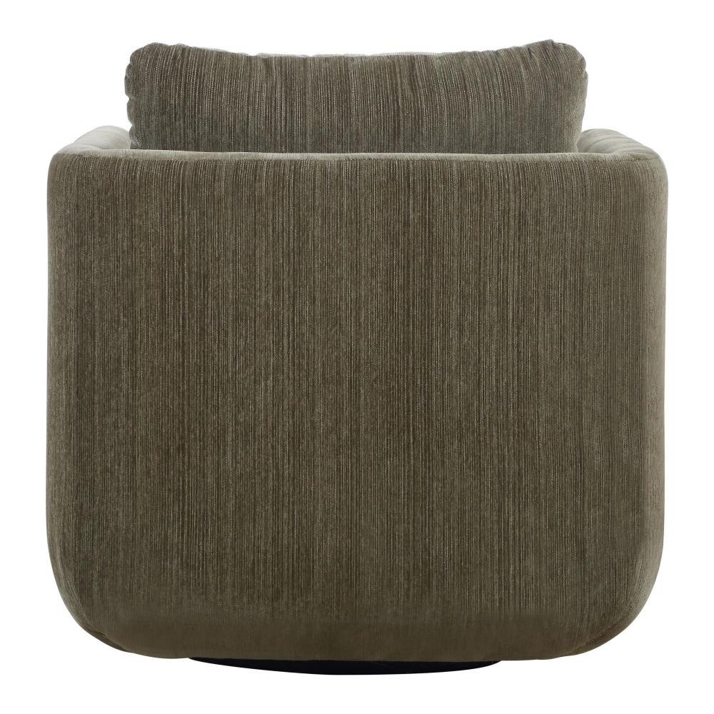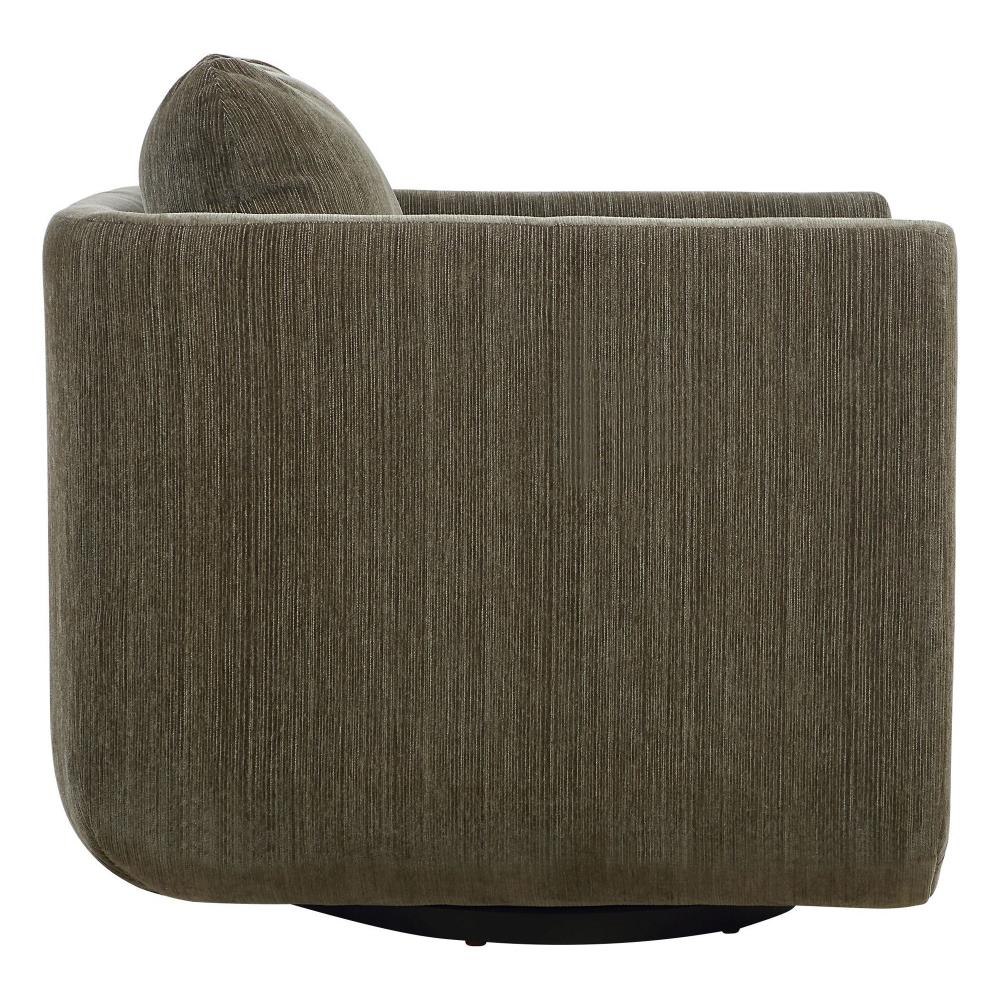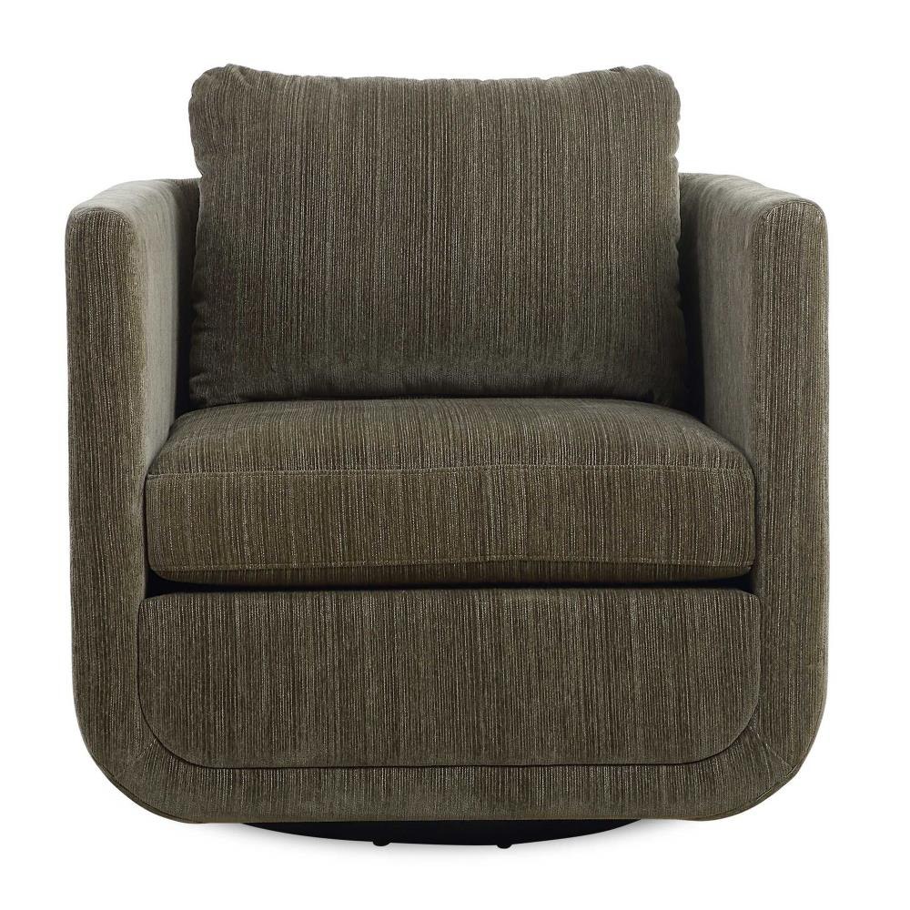 Curves Abound Creating Style And Ease, Featuring A Rounded Frame That Cradles The Base And Rests On A Hidden Swivel. Fully Upholstered In A Rich Textured Chenille In Ginger.