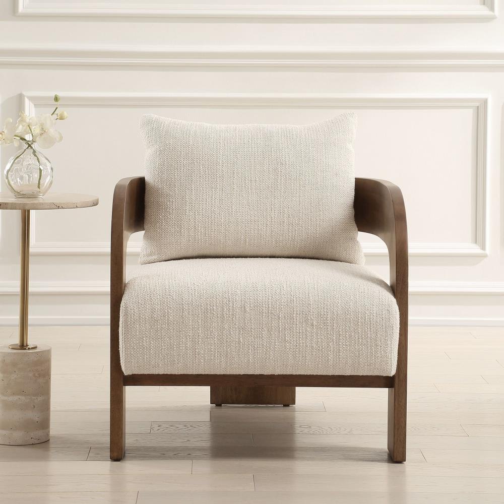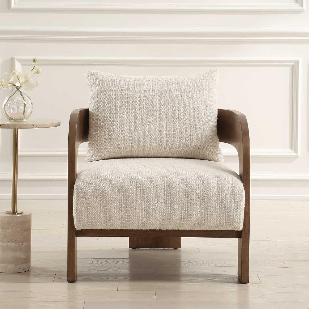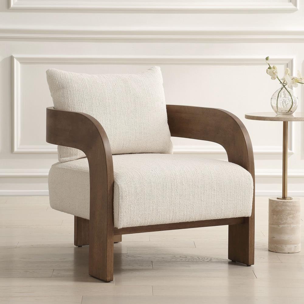 Drawing You In From Any Direction, The Beautiful Solid Wood Frame Of The Rowan Chair Features A T Back Design Finished In Walnut Stained Oak. The Contrasting Plush Seat And Back Are Upholstered In A Textured Ivory Boucle.