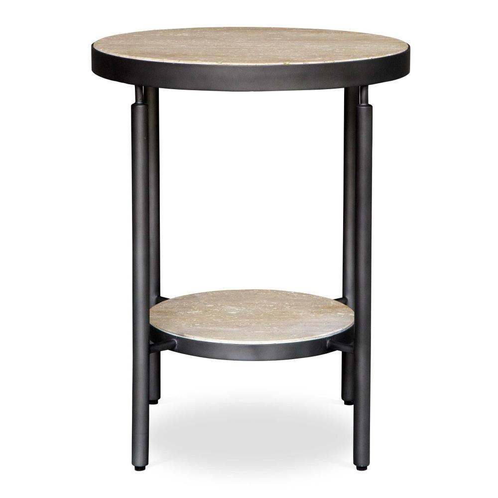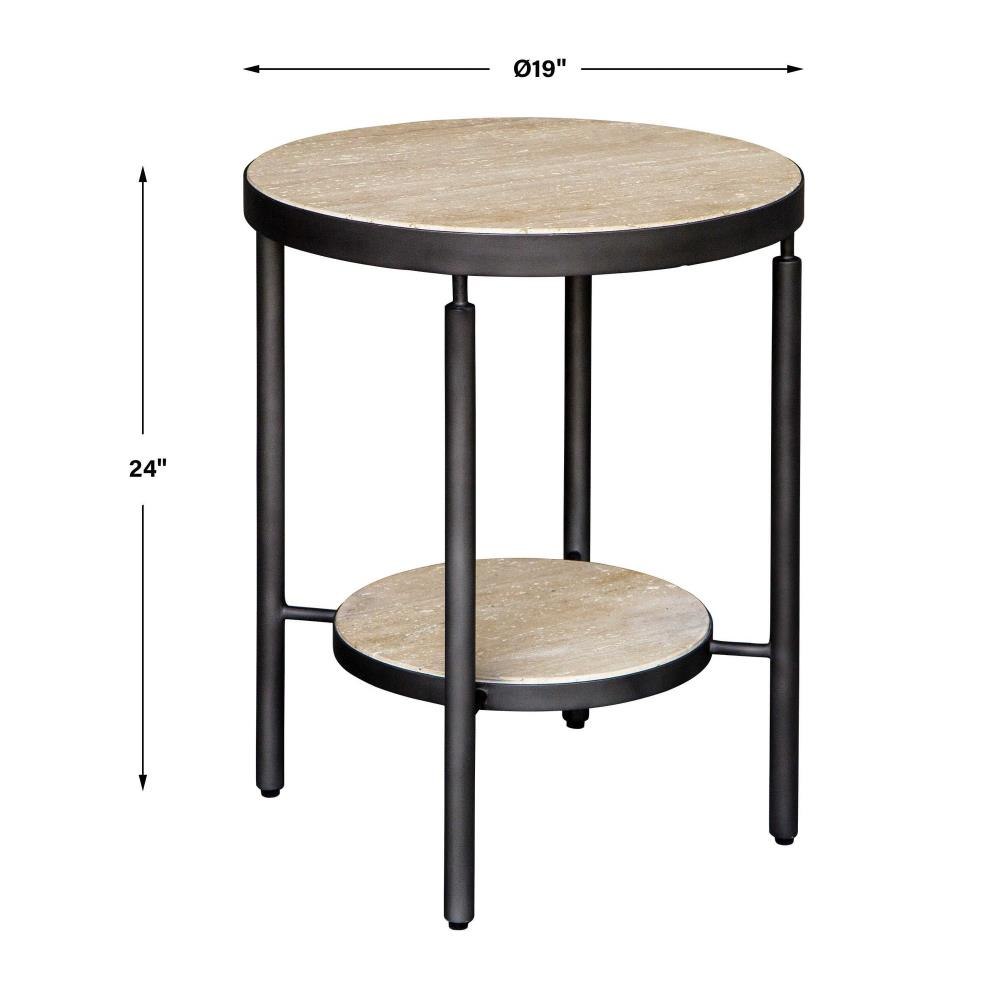 Perfect For Contemporary Or Industrial Interiors The Dauntless Side Table Features Two Beautiful Honed And Unfilled Travertine Shelves Suspended By A Matte Black Metal Frame. True To The Nature Of Natural Materials, Each Piece Will Have Unique Marbling And Veining Throughout.