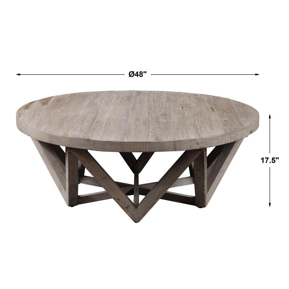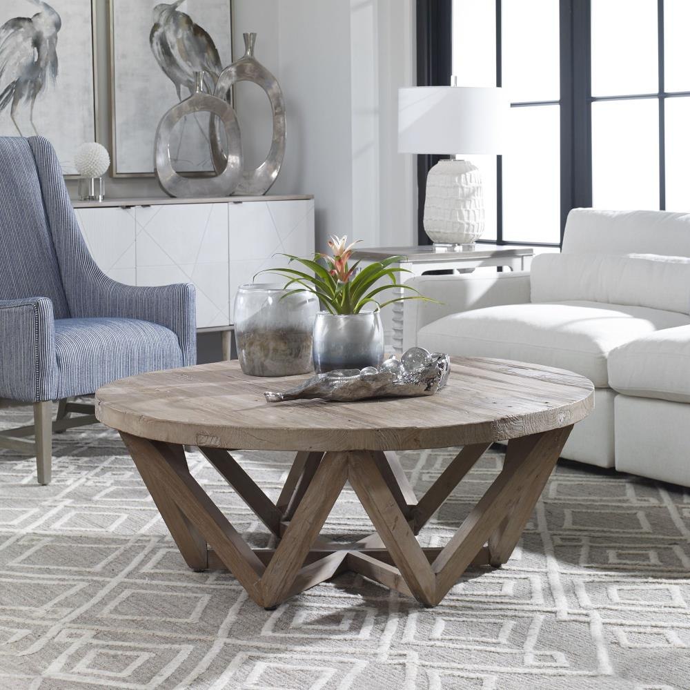 Constructed From Reclaimed Elm Wood, This Cocktail Table Features Natural Wood Grain And Rustic Texture With A Geometric, Triangle Base. Solid Wood Will Continue To Move With Temperature And Humidity Changes, Which Can Result In Small Cracks And Uneven Surfaces, Adding To Its Authenticity And Character.