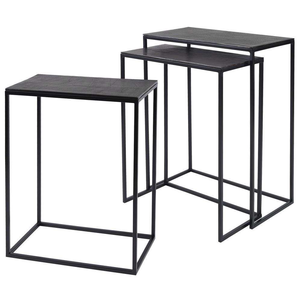 Functional Nesting Tables Constructed In An Aged Black Iron, Featuring A Textured Cast Aluminum Slab Top Finished In A Plated Antique Bronze. Sizes: Sm-17x22x9, Med-20x24x10, Lg-21x26x11