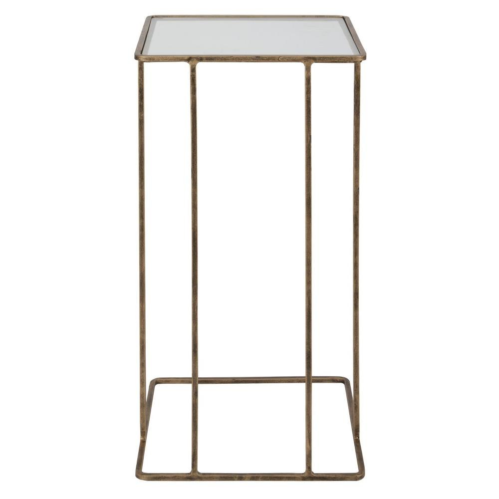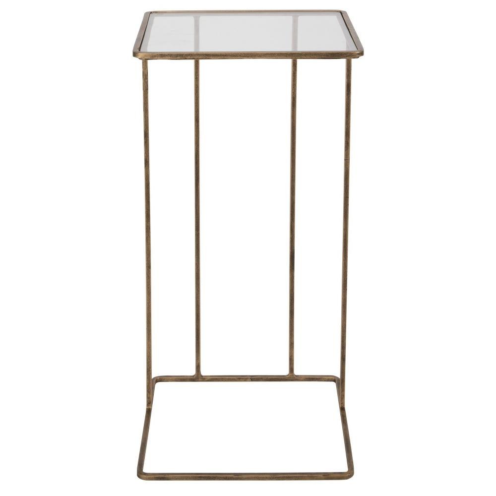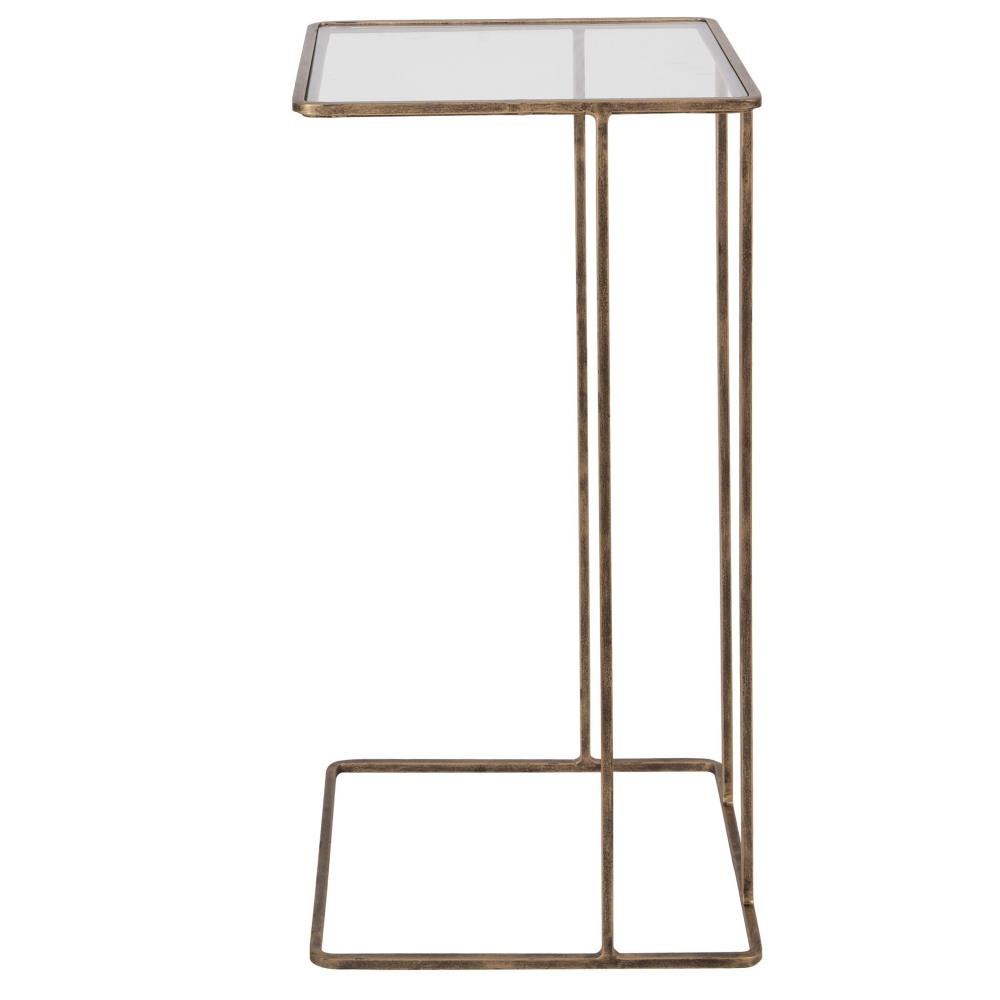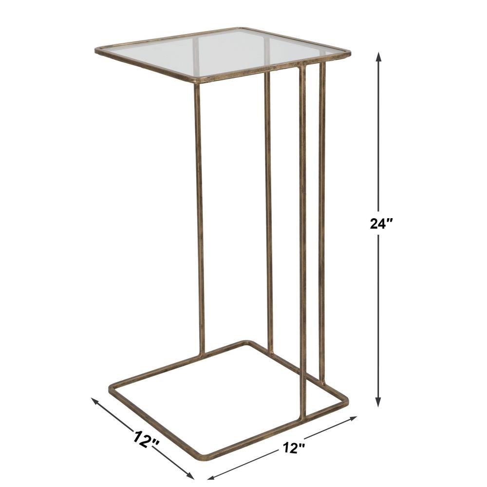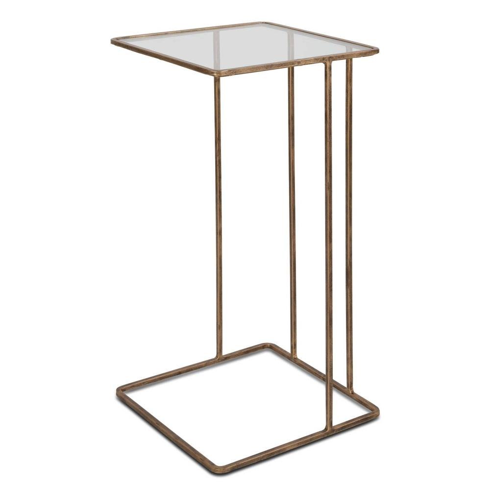 Minimally Designed With Versatility, This Petite Hand Forged Iron Side Table Is Finished In Heavily Antiqued Gold With A Clear Tempered Glass Top.