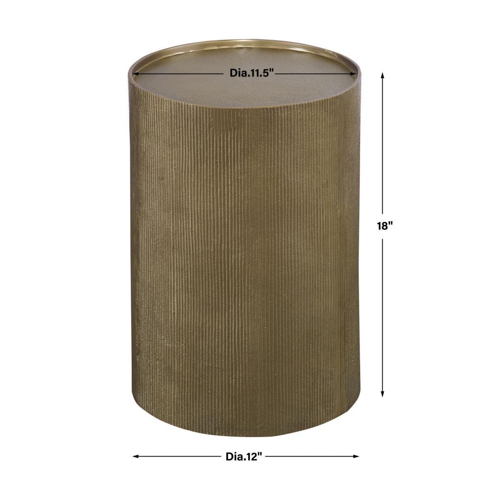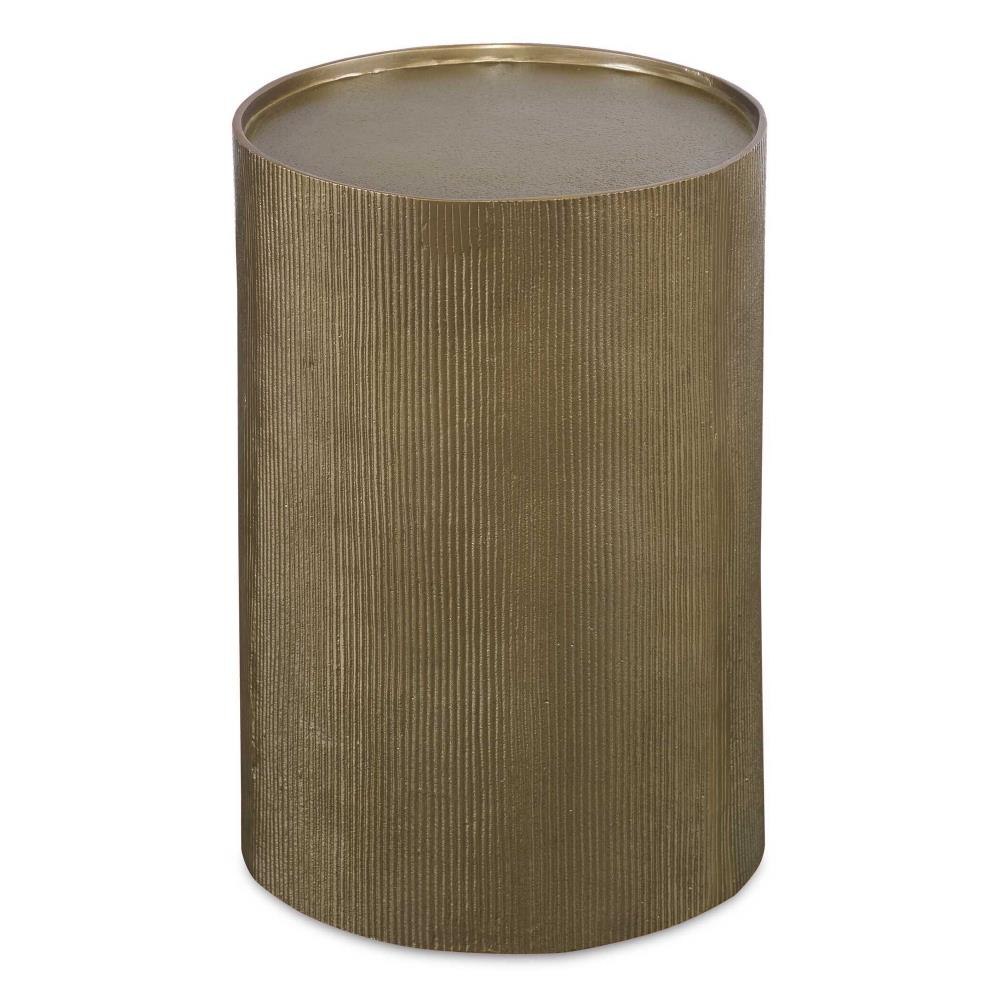 The Adrina Accent Table Features A Versatile Design In Cast Aluminum With A Heavily Textured Reeded Exterior Finished In A Beautiful Antique Gold.