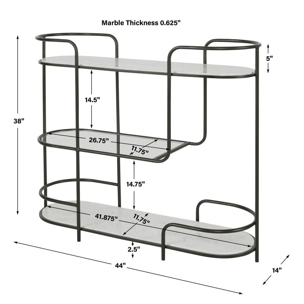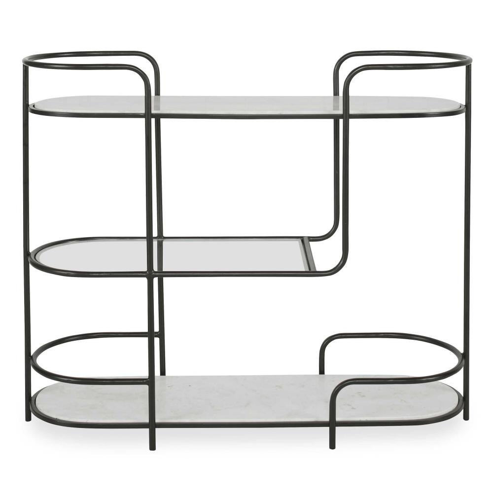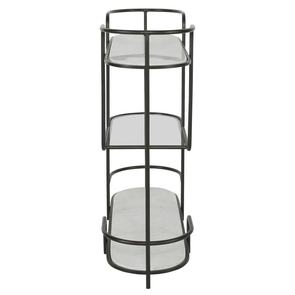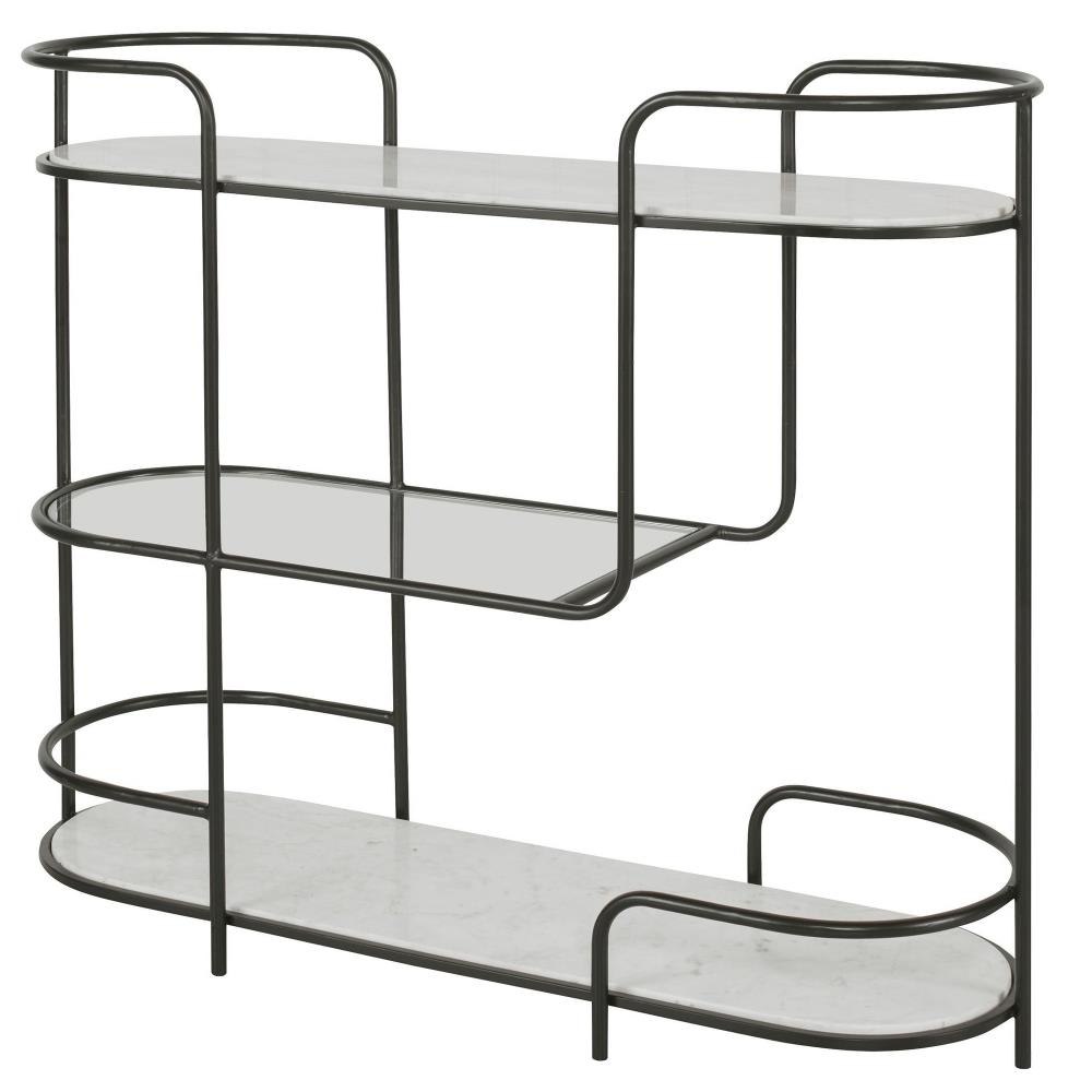 Inspired By A Mix Of Classic Mod Design And Contemporary Styling, This Multi-functional Piece Can Serve As A Bar, Server, Or Console Table. The Curved Iron Frame Is Finished In Satin Black, Accented By White Marble And Tempered Glass Shelving. Because Of The Natural Characteristics Of Marble, Each Piece Will Have Unique Veining Patterns.