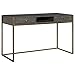 Contemporary In Style, This Writing Desk Features A Sleek Stainless Steel Framework In Plated Brushed Brass. The Top Is Crafted From Acacia Veneer In A Dark Walnut Stain And Light Gray Glaze With Brass Drawer Pulls.