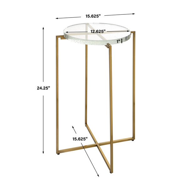 Sleek And Sophisticated, This Accent Table Showcases A Petite Stainless Steel Frame Finished In Brushed Gold And Is Accented By A Thick Seeded Glass Top.