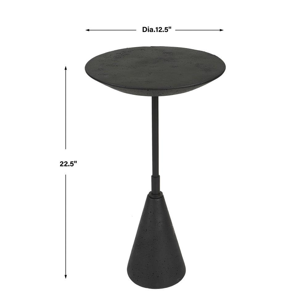 This Accent Table Makes A Dramatic Statement With Its Sleek, All Black Design. The Slim Steel Rod Is Accented By A Black Man-made Stone Top And Foot With A Noticeably Porous Texture.