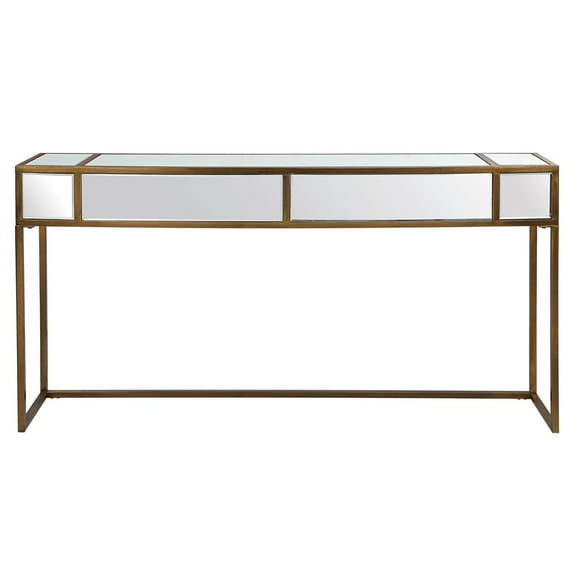 Maklaine Transitional Metal Console Table with Mirrored Top in Gold $285.76