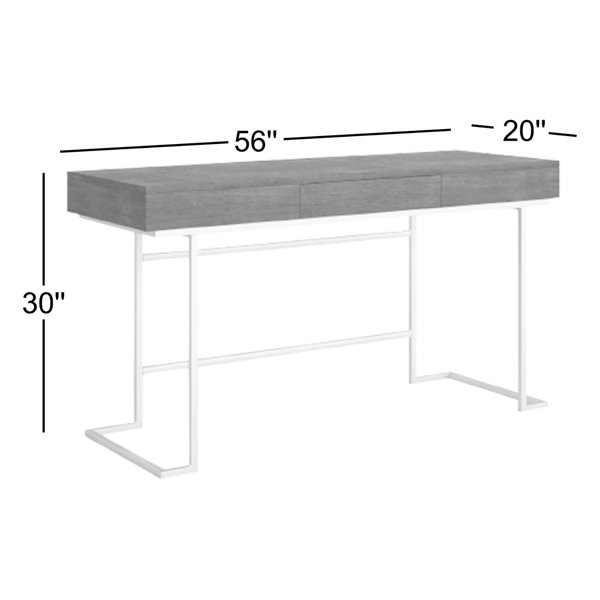 Outfit your office with this clean-lined contemporary desk, featuring an oak veneer top finished in smoke gray with a subtle light gray wash, atop a stainless steel base finished in a plated brushed nickel.