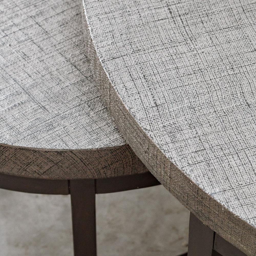 Offering Versatile Function With Modern Influences, This Duo Features Burlap Wrapped Tops Heavily Glazed In A Taupe Wash, With Solid Hardwood Bases Finished In A Hand Rubbed Black Coffee. Sizes: Sm-31x31x15, Lg-43x43x18