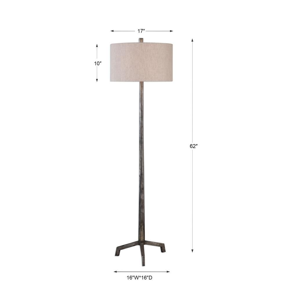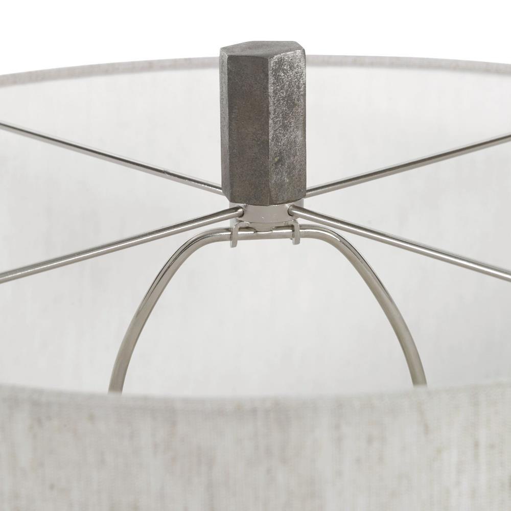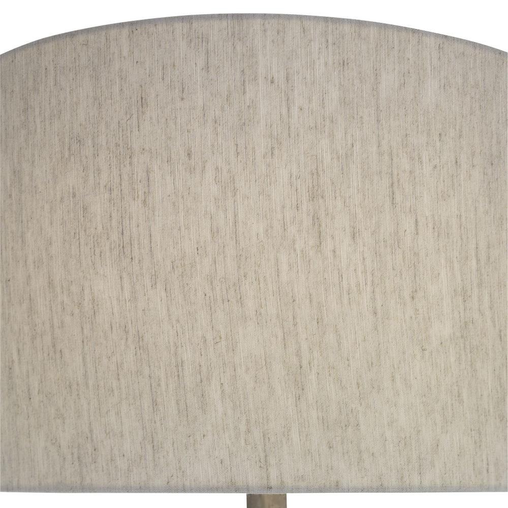 Tapered Cast Iron With A Subtle Textured Surface, With A Raw Steel Finish And Burnished Distressing. The Round Hardback Drum Shade Is A Light Beige Linen Fabric With Natural Slubbing.