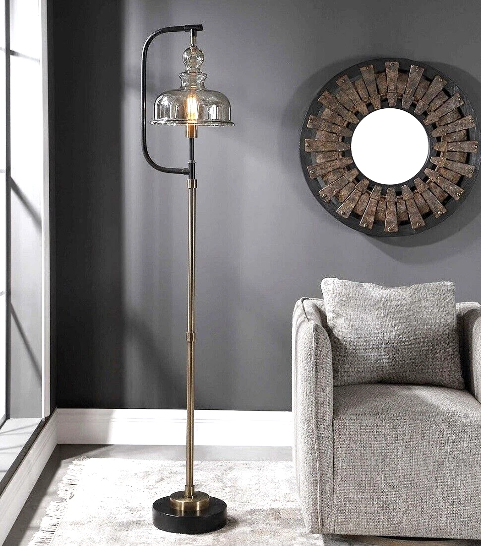 Antique Style Industrial Warehouse Floor Lamp Amber Glass Shade~ Uttermost 28193