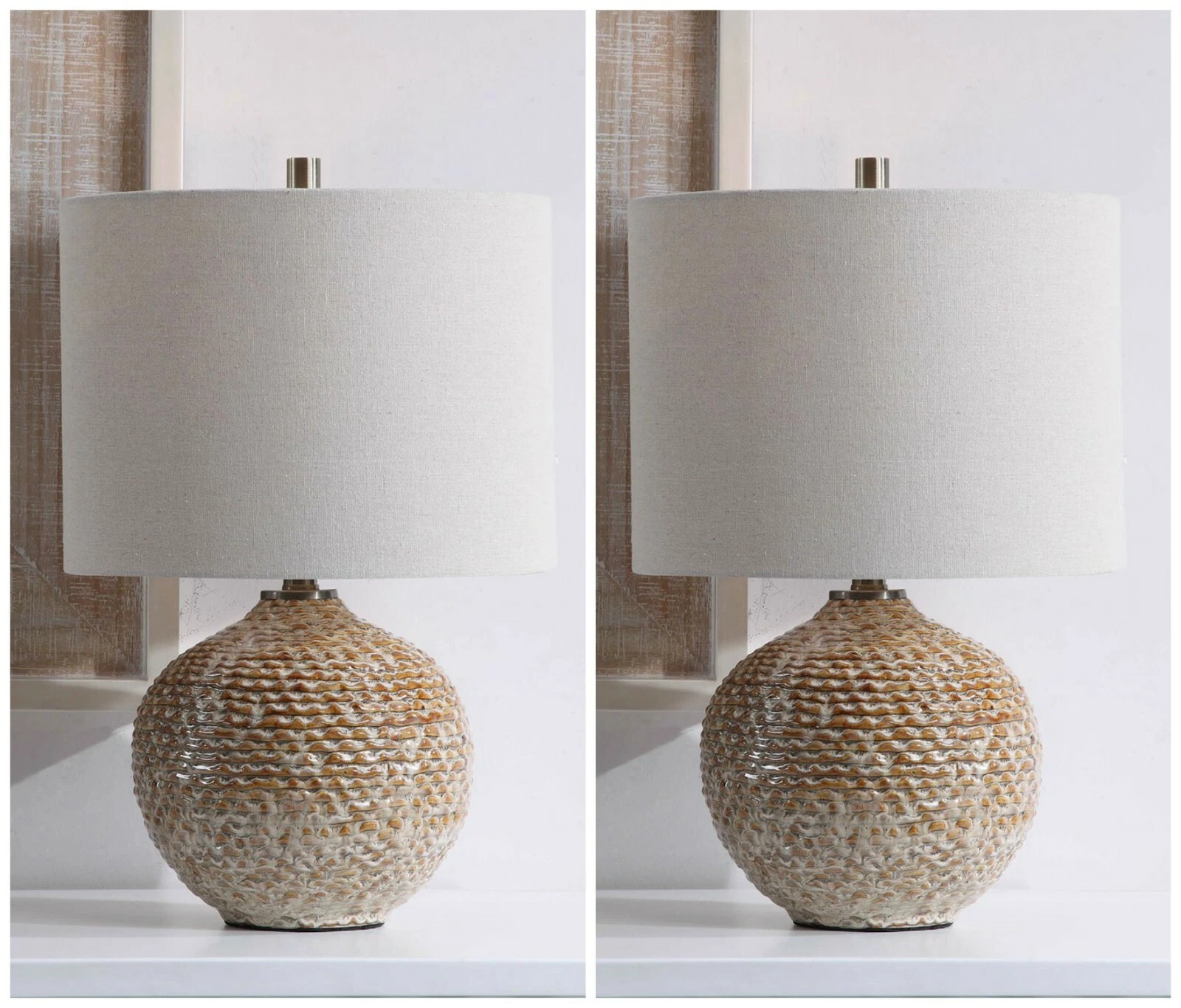 TWO LAGOS 22" RUSTIC TEXTURED CERAMIC TABLE LAMP UTTERMOST 28343