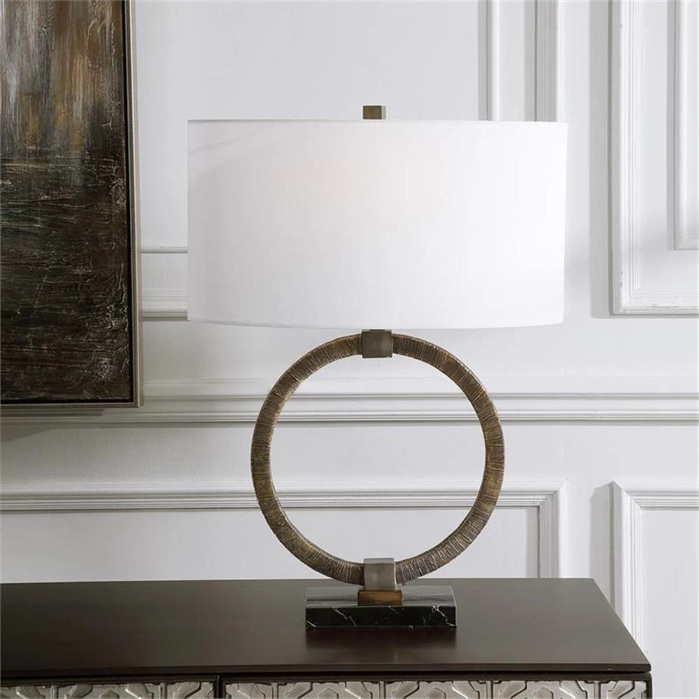 Uttermost Contemporary Resin Marble Iron and Fabric Table Lamp in Gold