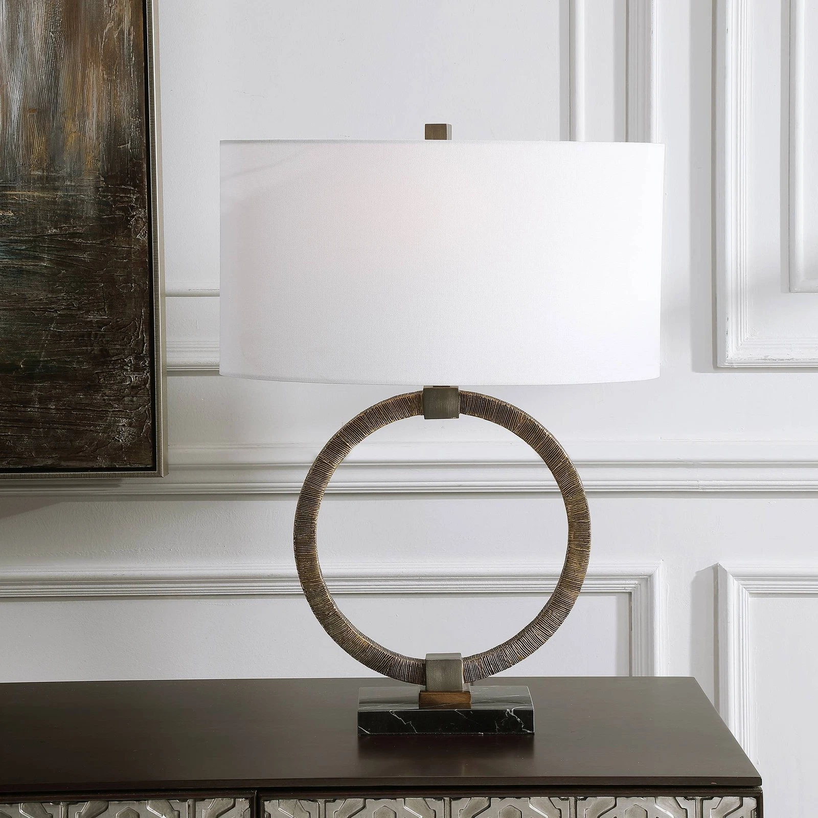 Rustic Table Lamp 26" High Antiqued Gold White Oval Shade for Living Room House