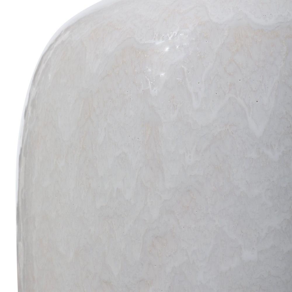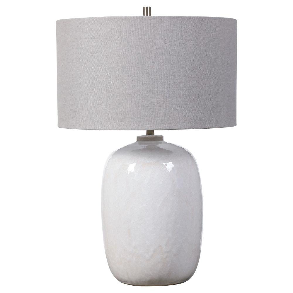 Simple Yet Versatile, This Ceramic Table Lamp Features A Cream-ivory Drip Glaze With Subtle Texture, Accented By Brushed Nickel Plated Details. The Lamp Is Paired With A Light Gray Linen Fabric Drum Shade.