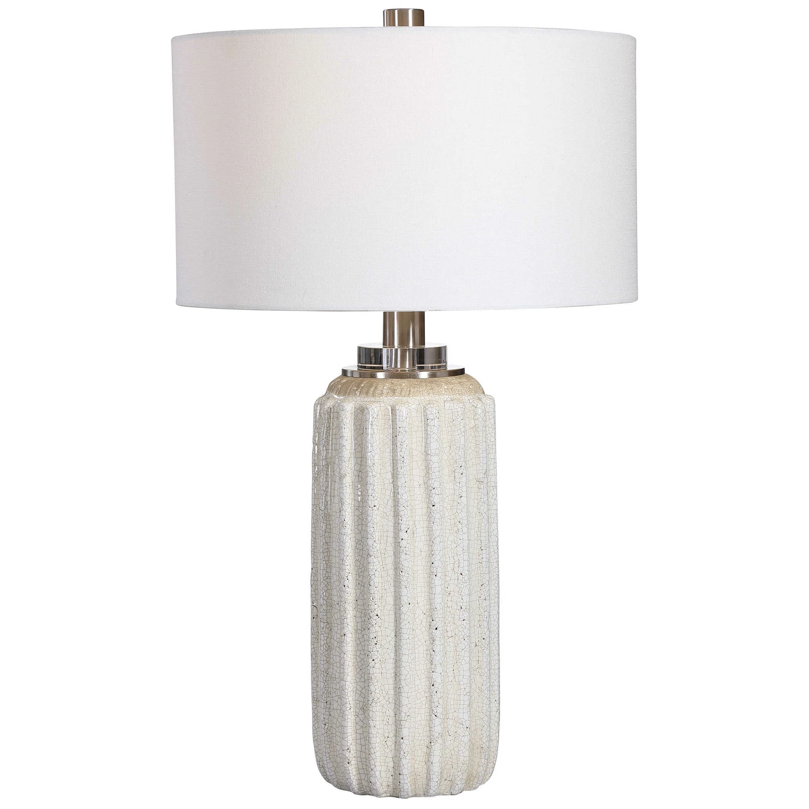 Deep Ribbed Crackled Ceramic Table Lamp Cream Beige Vertical Lines Elegant