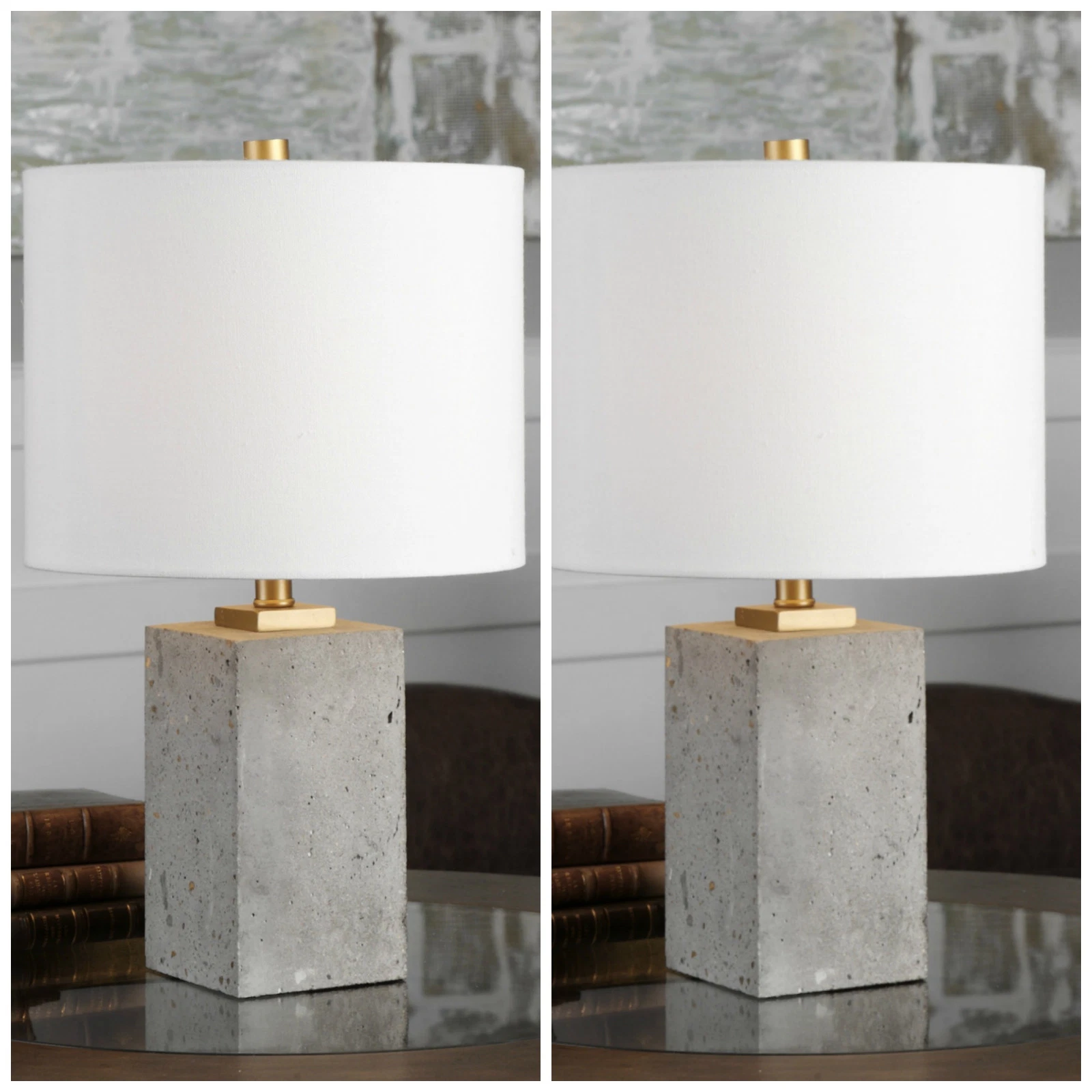 PAIR STAINED CONCRETE TABLE LAMPS UTTERMOST DESK LIGHT 29237