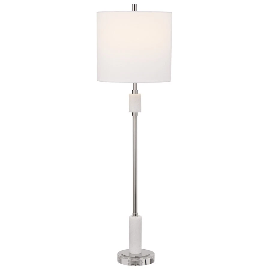 Uttermost Sussex Nickel 1 Light Buffet Lamp, White Marble - 29793-1