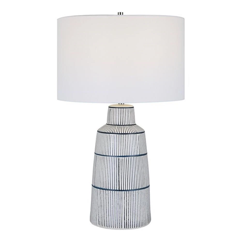 Uttermost Breton Steel Ceramic & Fabric Nautical Stripe Table Lamp in Blue/White