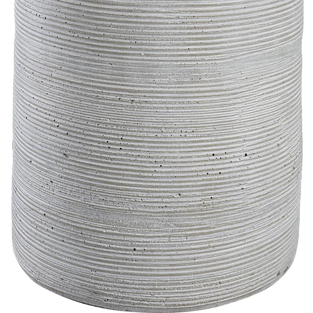 Handcrafted In An Artisanal Style, This Table Lamp Is Formed From Ceramic In Neutral Off-white And Gray Tones With Carved Ring Detailing. Steel Accents Are Finished In A Complementary Brushed Nickel. The Hardback Drum Shade Is Covered In A White Linen Fabric.
