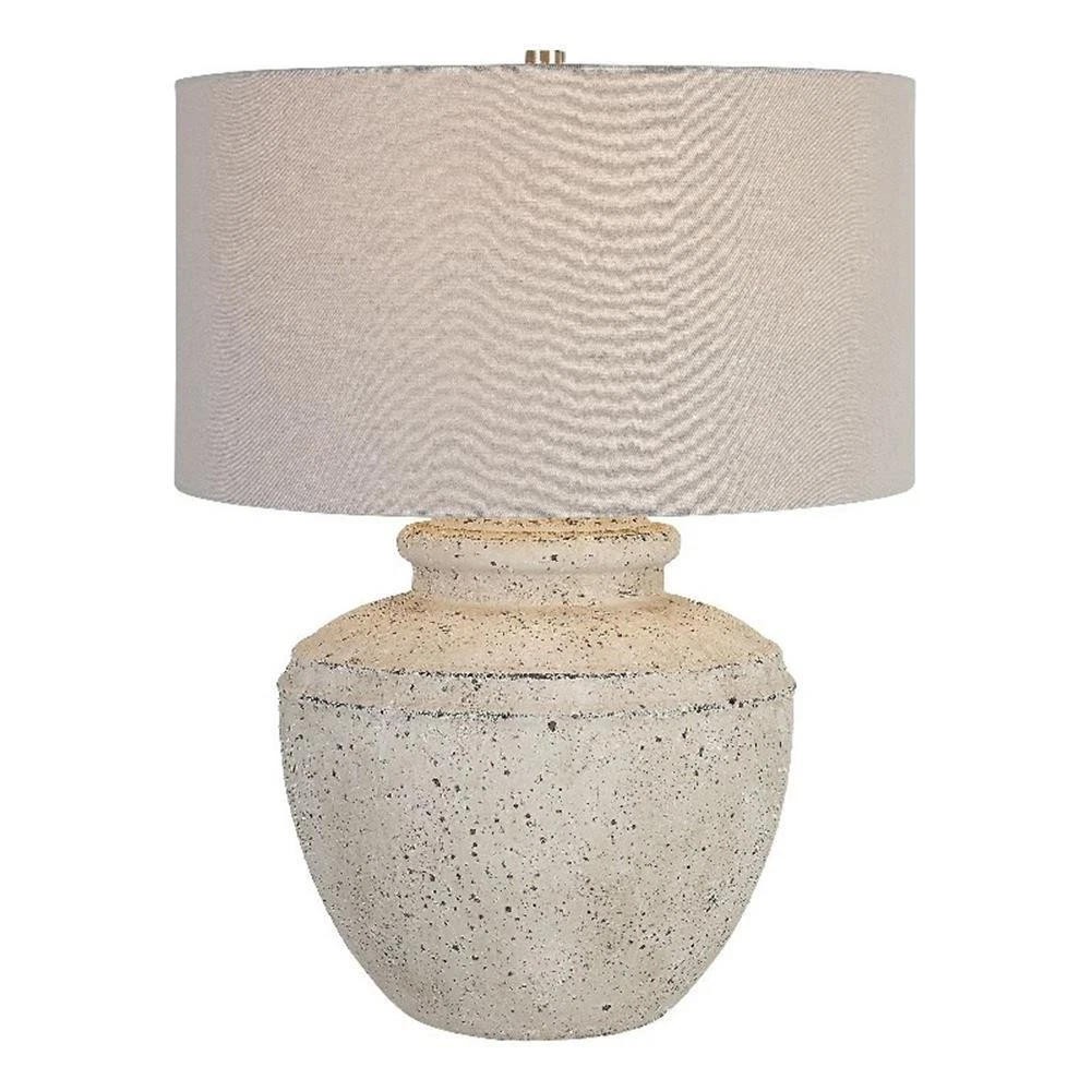 Uttermost Artifact Steel Ceramic and Fabric Table Lamp in Gray/White