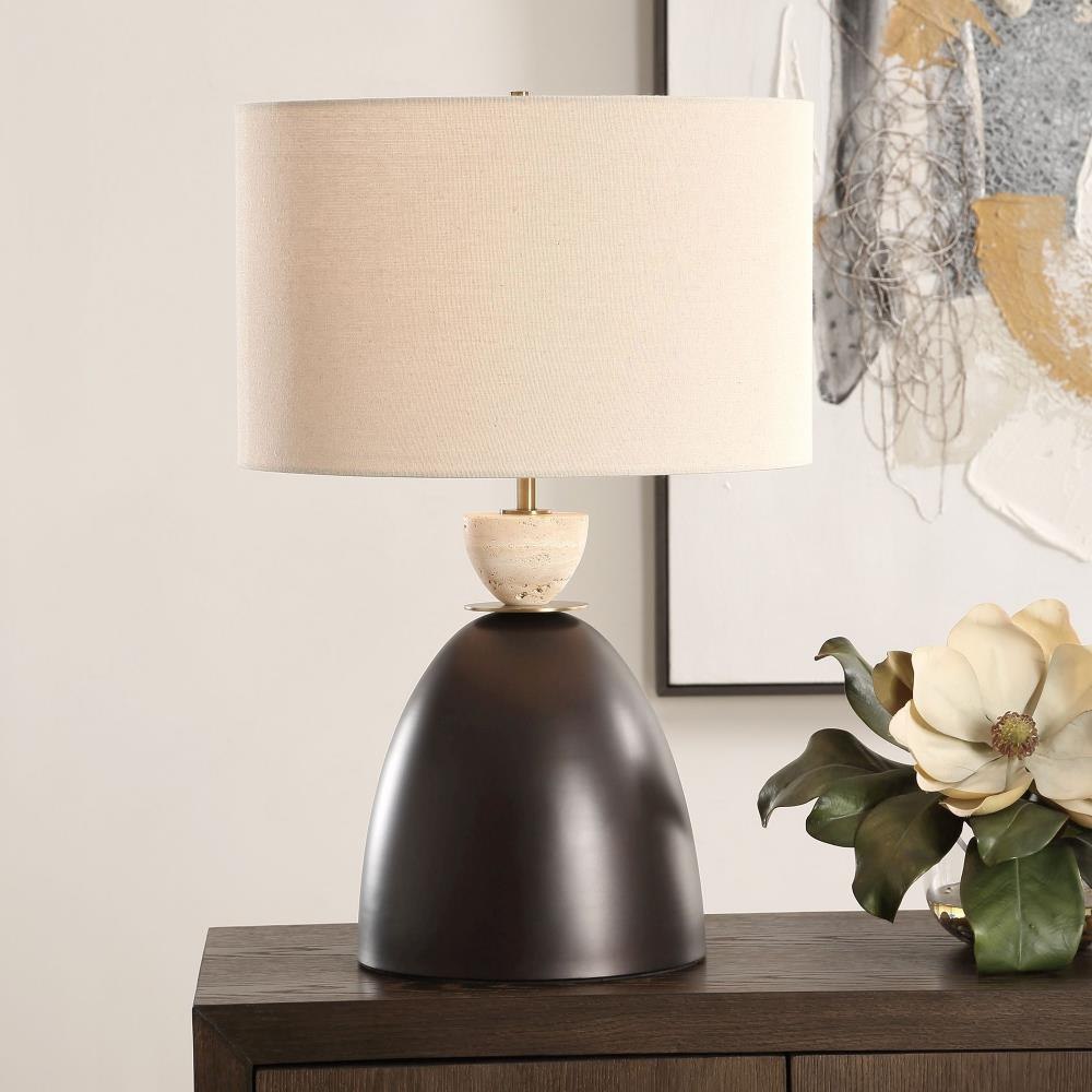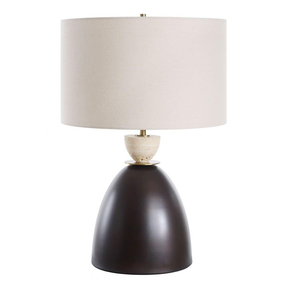 Featuring A Distinctive Dark Bronze Iron Base Paired With A Contrasting Travertine Stone Ornament, The Procida Table Lamp Effortlessly Blends Sophistication And Contemporary Style, Making It A Striking Addition To Any Space. The Round Hardback Shade Is Covered In A Light Beige Linen Fabric With Natural Slubbing.
