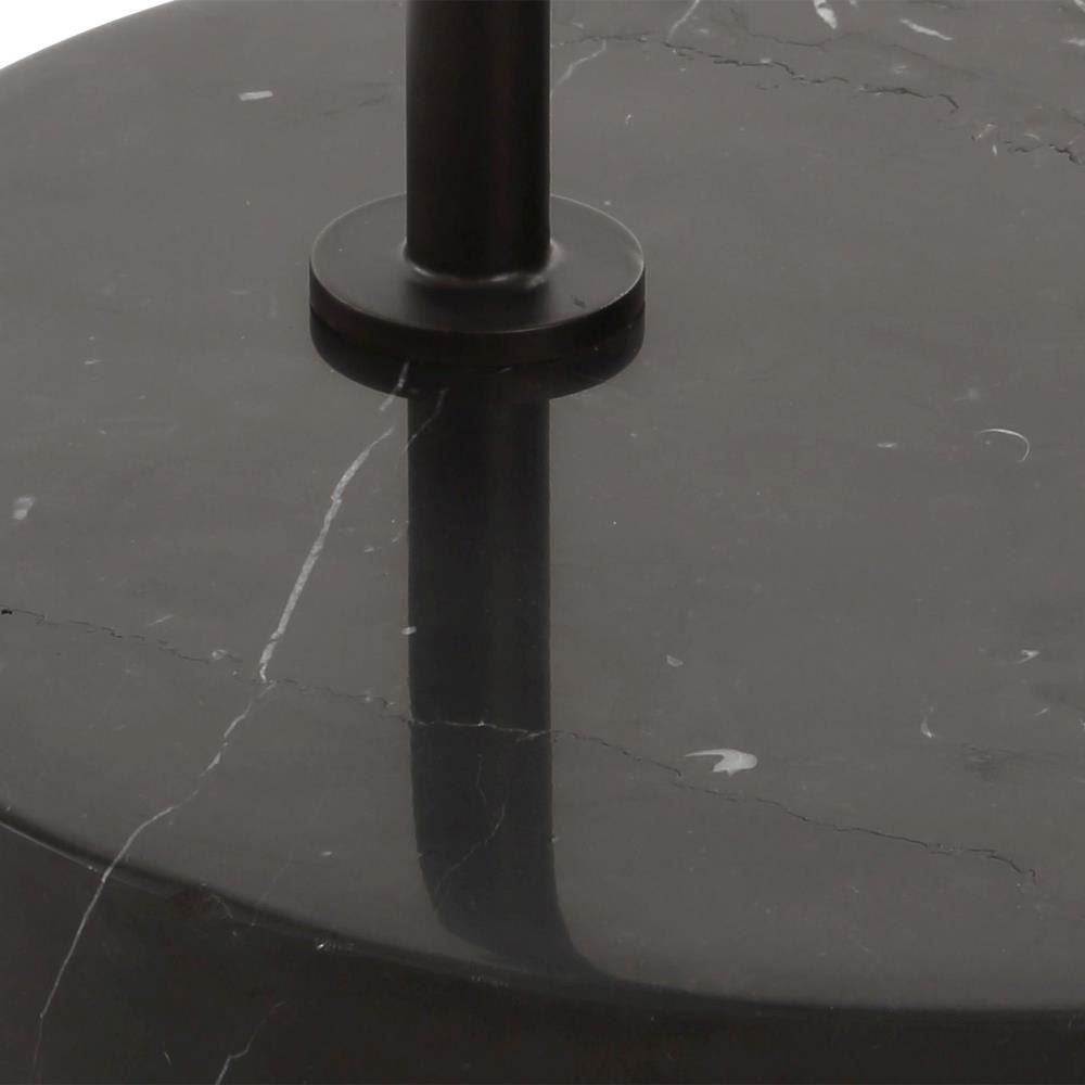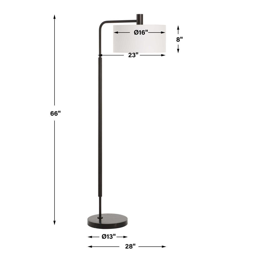 The Richie Floor Lamp Is Crafted From Steel With A Satin Black Finish Seamlessly Anchored By A Thick Black Marble Foot. This Floor Lamp Features A Suspended Round Hardback Shade That Is Covered In White Linen Fabric.