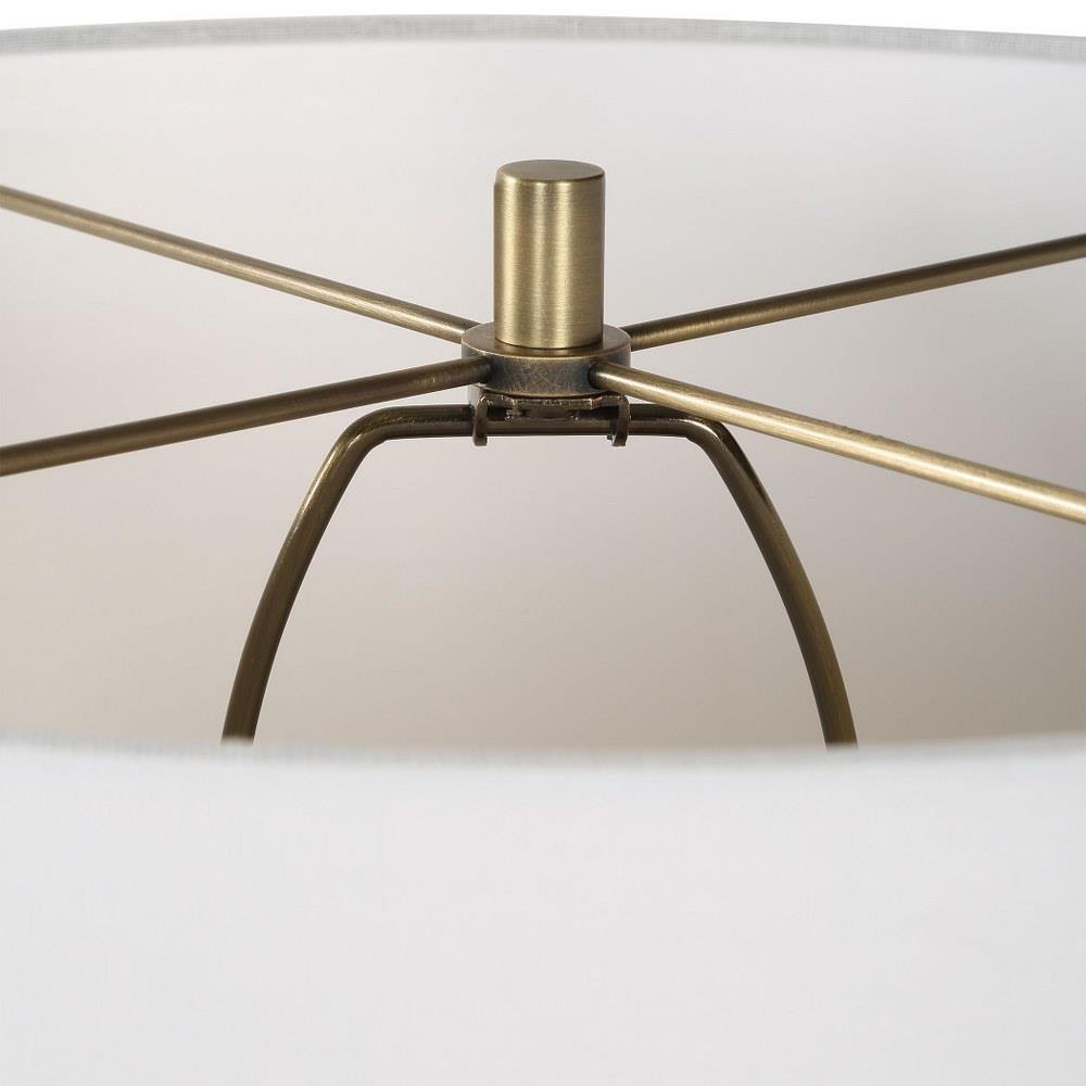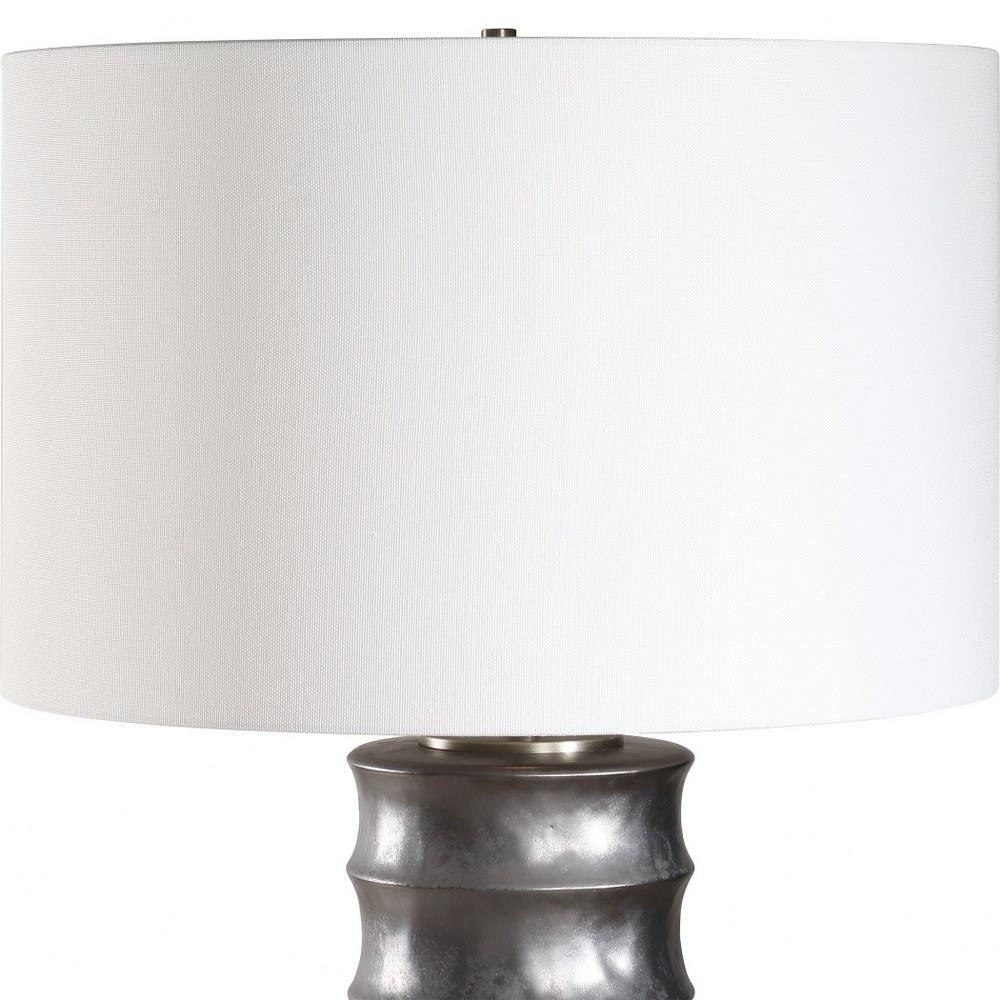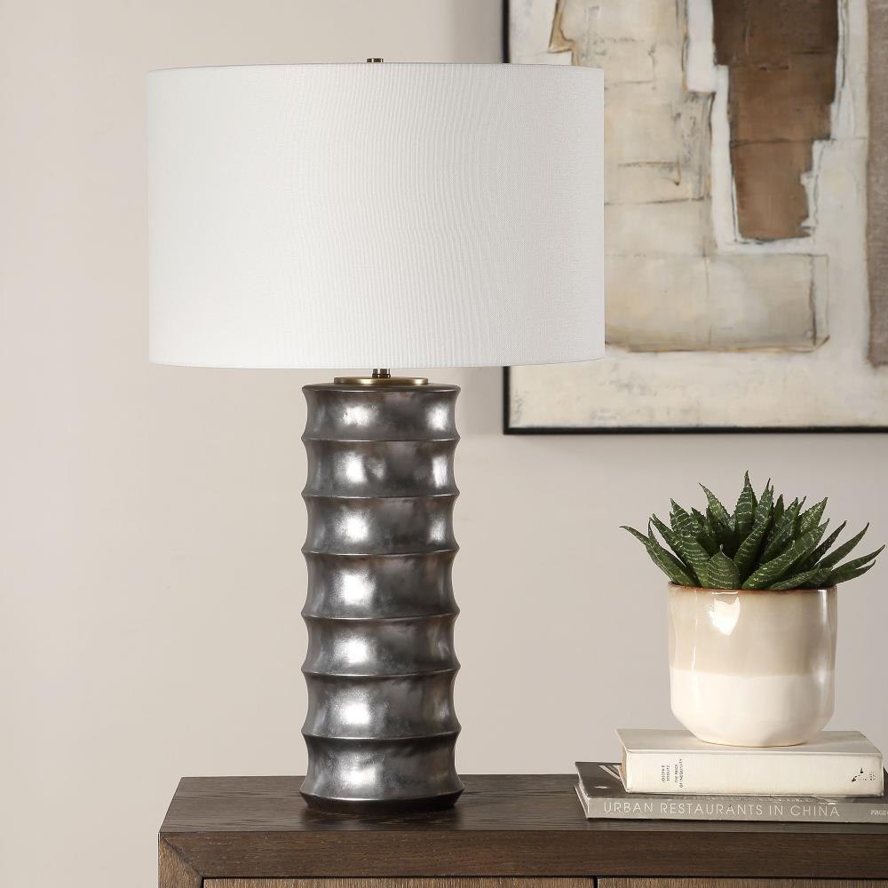 Made From Porcelain, The Corvair Table Lamp Features A Timeless Scalloped Design Finished In Metallic Dark Bronze Glaze, Paired With Brass Plated Details That Adds Depth And Dimension To Its Sleek Design. The Round Hardback Drum Shade Is Made In A Casual White Linen Fabric.