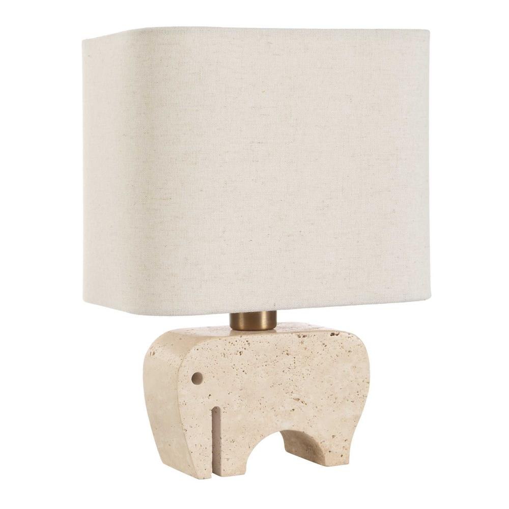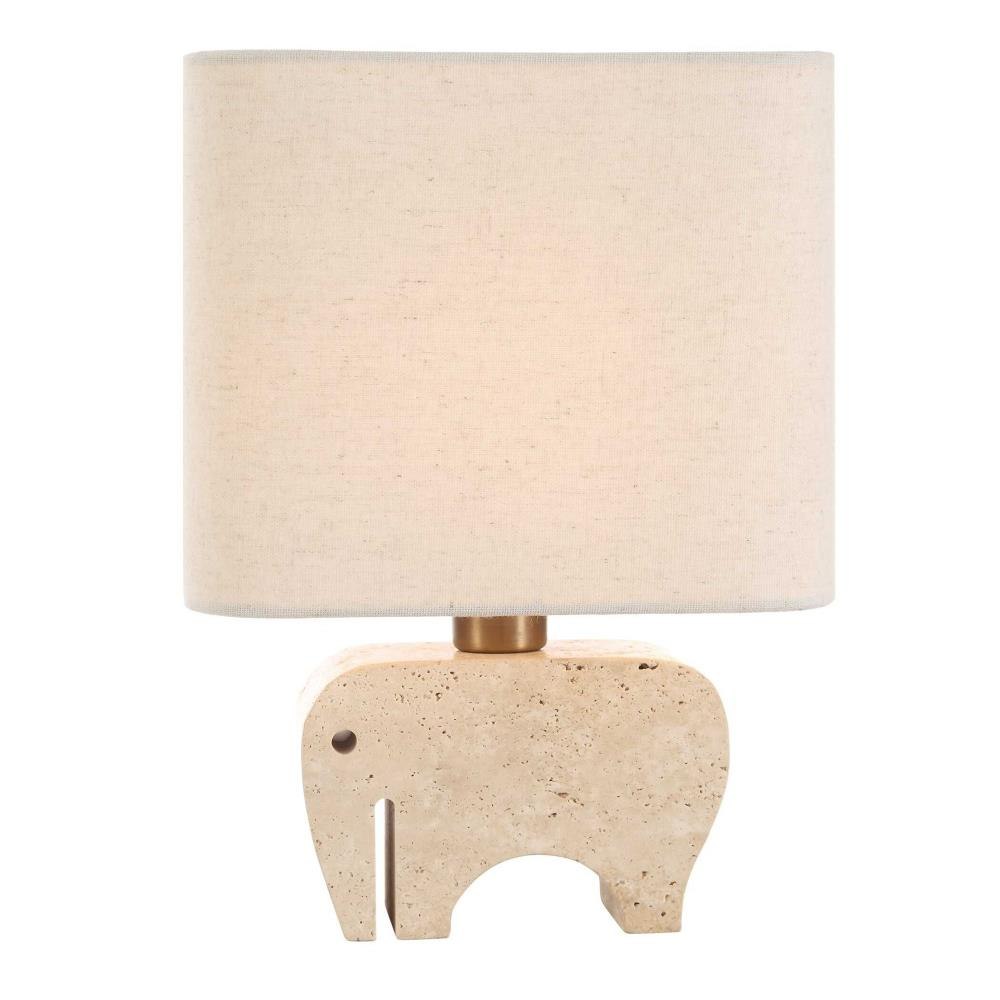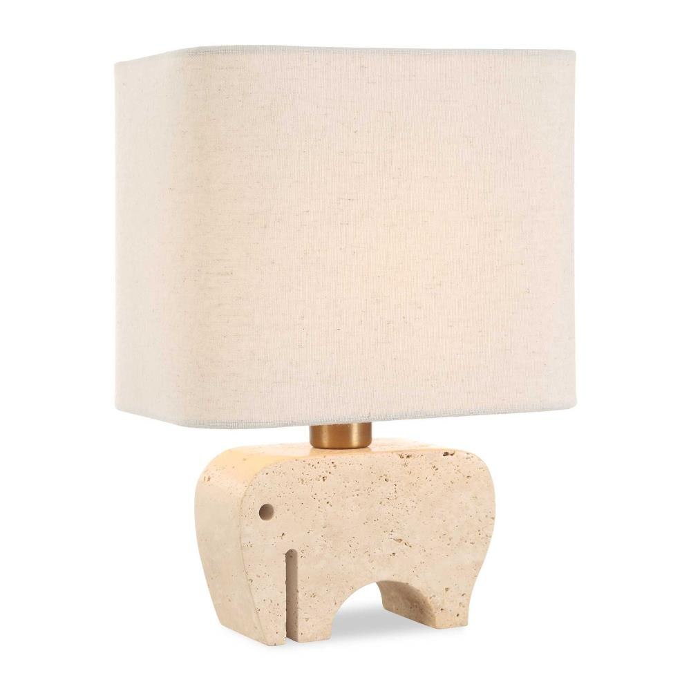 The Petite Tusk Accent Lamp Features A Whimsical Elephant Sculpture Carved Out Of Beige Travertine, Accented With Brass Plated Details. The Rectangle Hardback Shade With Curved Corners Is Covered In A Casual Khaki Fabric With Natural Slubbing. Perfect Accent Piece For Kitchen Counters, Etageres, Or Anywhere That Needs Visual Artistry.