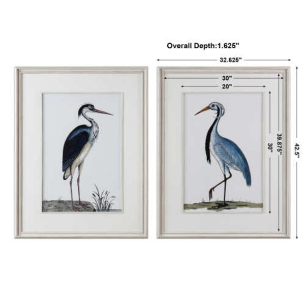 This 2-piece art print set by Grace Feyock is printed on artist-quality paper using high-quality inks that are meant to look new for years to come. Each artwork is accented by white mats and surrounded by distressed, white-washed wooden frames and matching fillets. A beautiful depiction of wading seabirds, their neutral white and blue colors make a great accent on neutral shiplap walls, and their vertical orientation fits into spaces of all sizes, from an entryway to a large coastal cottage bedroom. Best of all, these 44"-tall art prints are ready to hang right out of the box since they come with wall-mounting hardware.