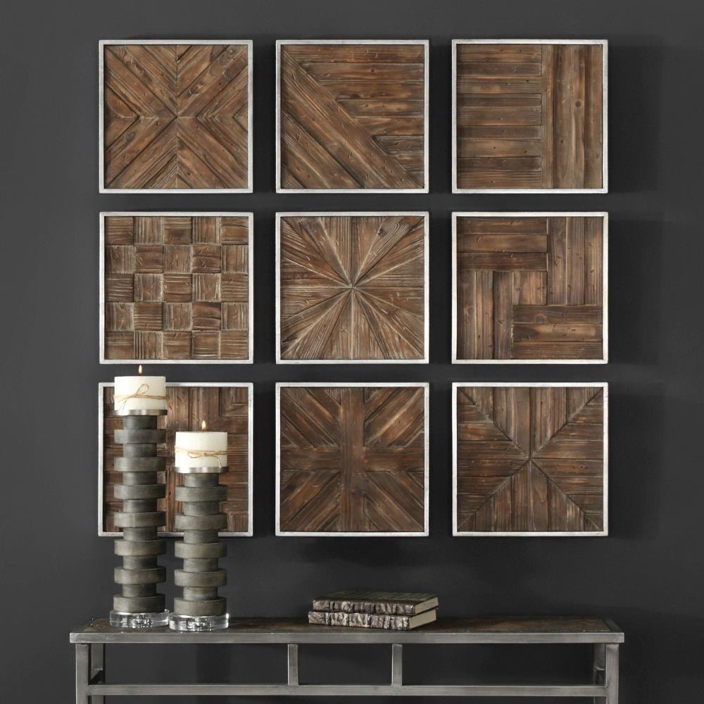 A Collage Of Unique 3-dimensional Pieced Patterns Of Rustic Distressed Fir Wood, Framed In Silver Leaf.