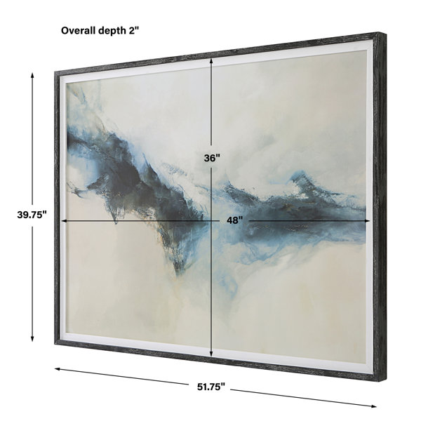 Black frame with white linen liner, no glass, abstract print with navy and indigo.