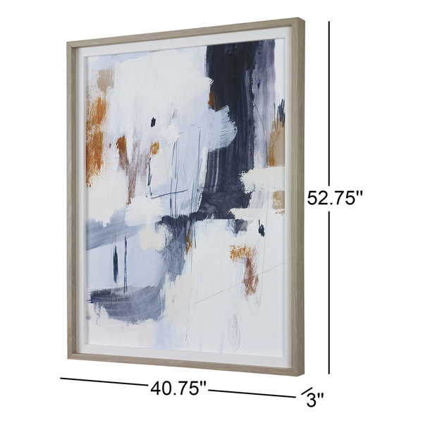 This Striking, Modern Abstract Utilizes Varying Shades Of Navy And Light Blue Paired With Bold Pops Of Rust. The Print Is Accented By A Clean Linen Liner And Natural Pine Frame With A Light White Wash. Hangs Four Ways. Artwork By Victoria Barnes.