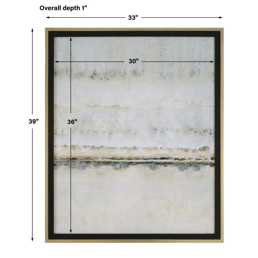 The Gilded Horizon Framed Print Depicts An Abstract Landscape In A Versatile Neutral Palette With Gold Leaf Highlights. An Antique Gold Leaf Frame With A Matte Black Inner Liner Accentuates The Print. Artwork By Tim O'Toole.