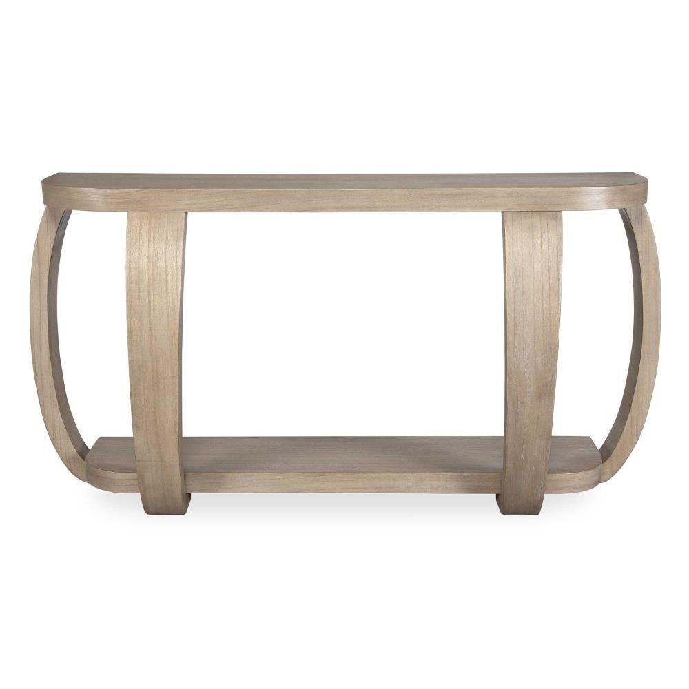 This Console Table Features A Beautiful Natural Mindi Wood Finish That Highlights The Organic Grain And Texture Of The Wood. The Design Boasts Of A Gracefully Curved Base With An Open Frame, Giving It Airy Contemporary Feel.