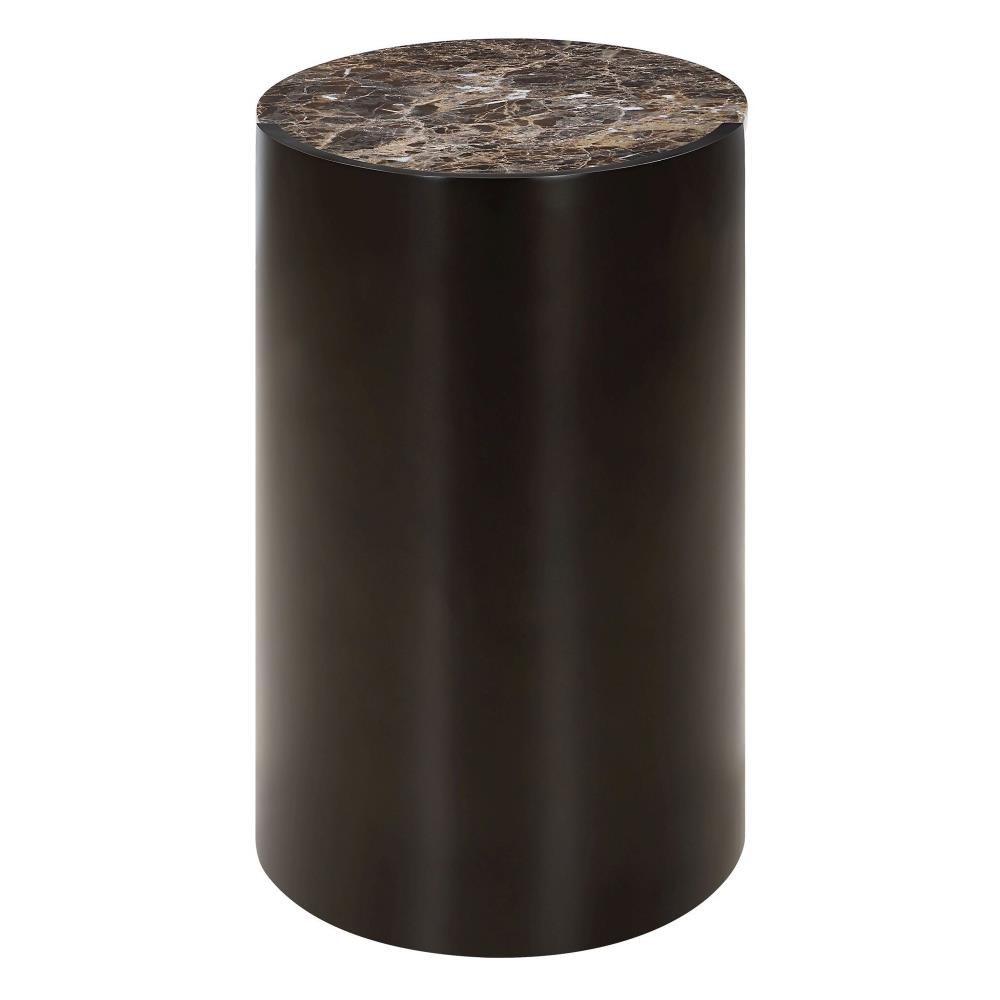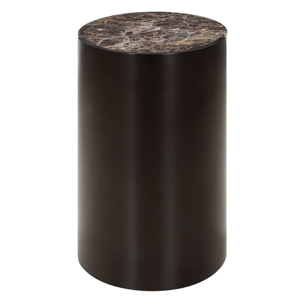 This Side Table Features A Sleek Black Metal Base With A Distinctive Sculptural Form That Enhances Both Visual Interest And Stability. The Tabletop Is Crafted From Chocolate Brown Marble, Adorned With Subtle Neutral Veining That Adds An Elegant Touch. Due To The Nature Of Marble, Each Piece Will Have Unique Coloration And Veining Pattern.