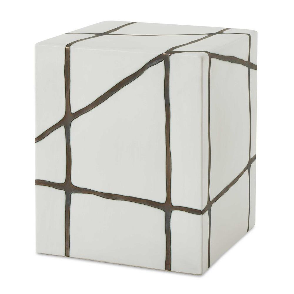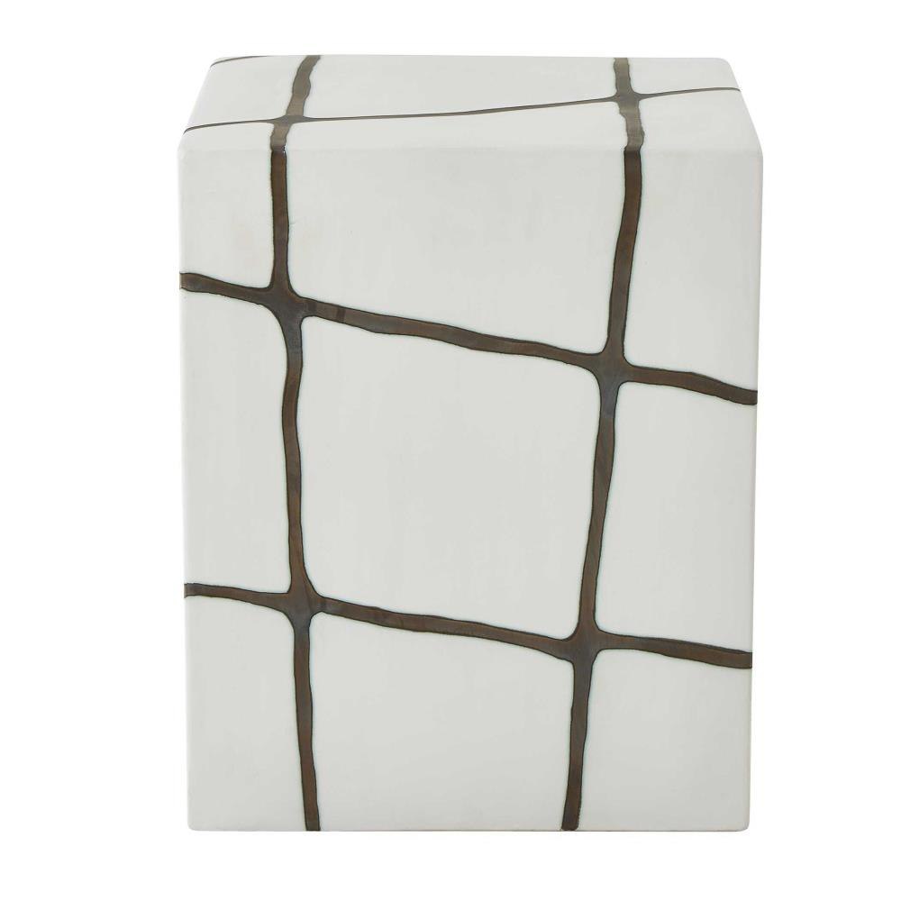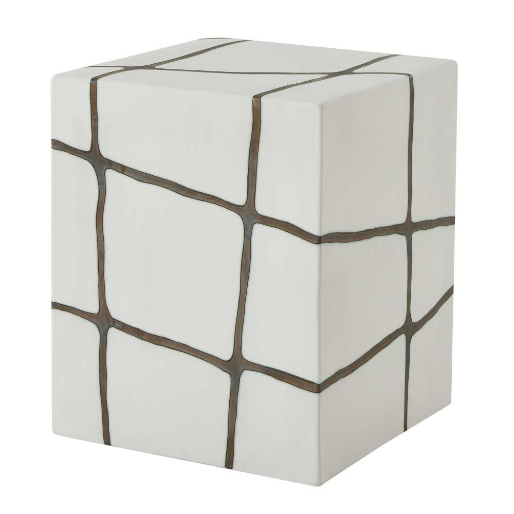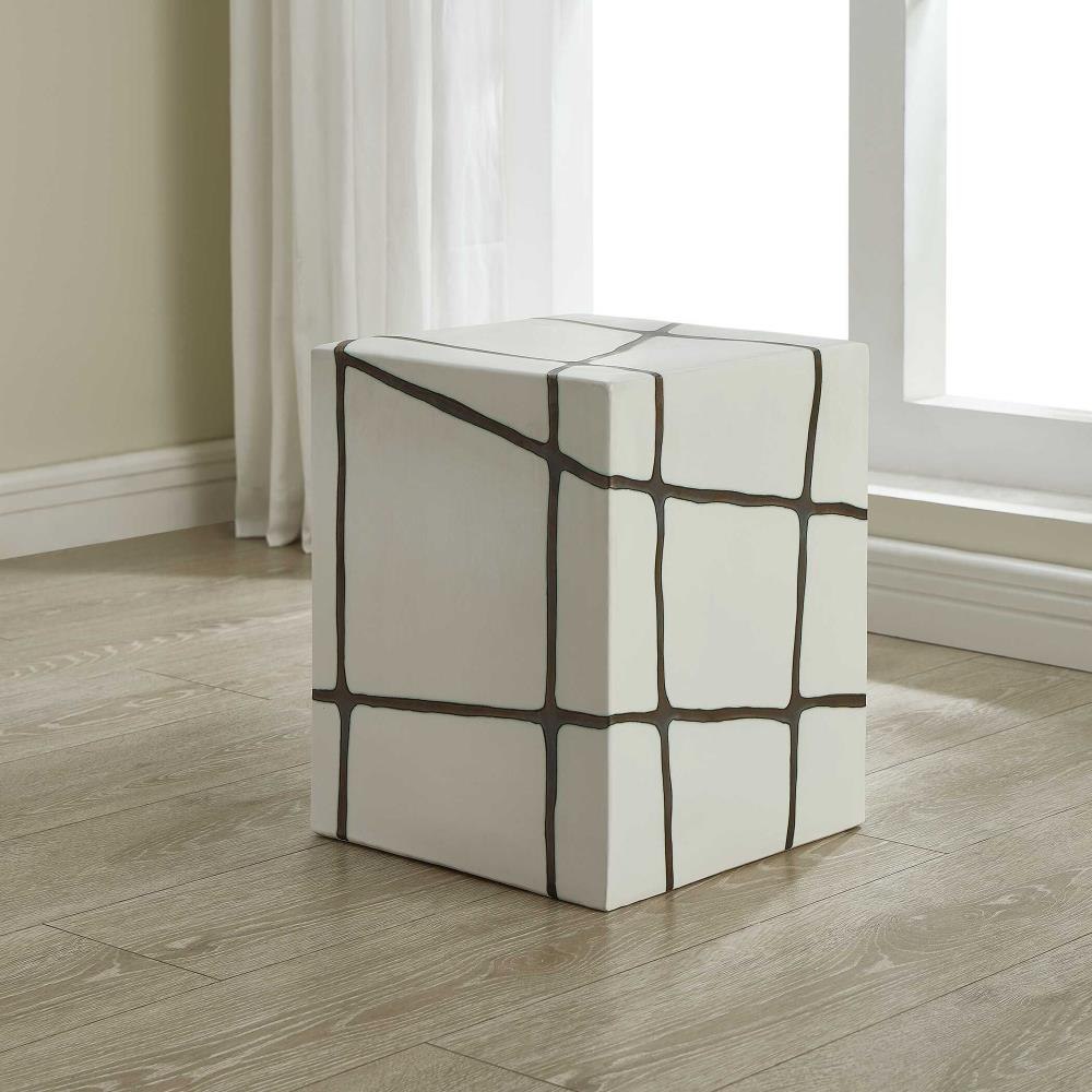 Smooth White Garden Stool With A Striking Bronze Finish Inlay, Crafted Entirely From Earthenware Clay. May Be Used Outdoors, But Protection From Freezing Temperatures Is Recommended.