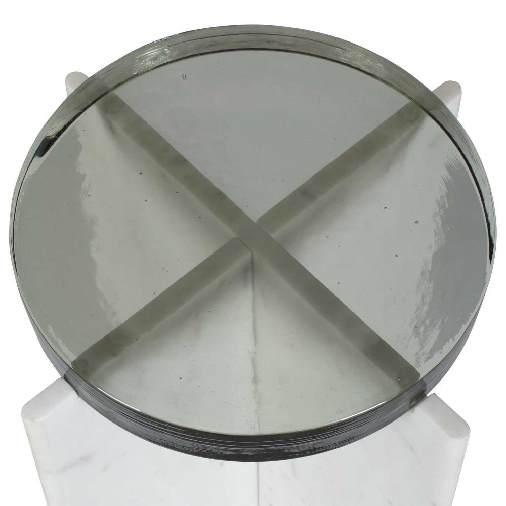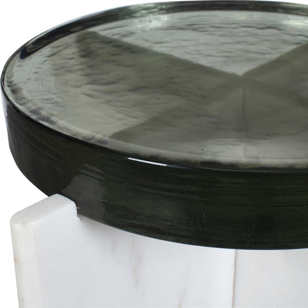 This Luxurious Accent Table Boasts A Captivating Design With An X-shaped White Marble Base With Gray Veining And A Thick Cast Glass Top. Due To The Nature Of Natural Stone, Every Piece Will Vary Slightly Ensuring Yours Is Unique. Suitable For Both Indoor And Outdoor Use.
