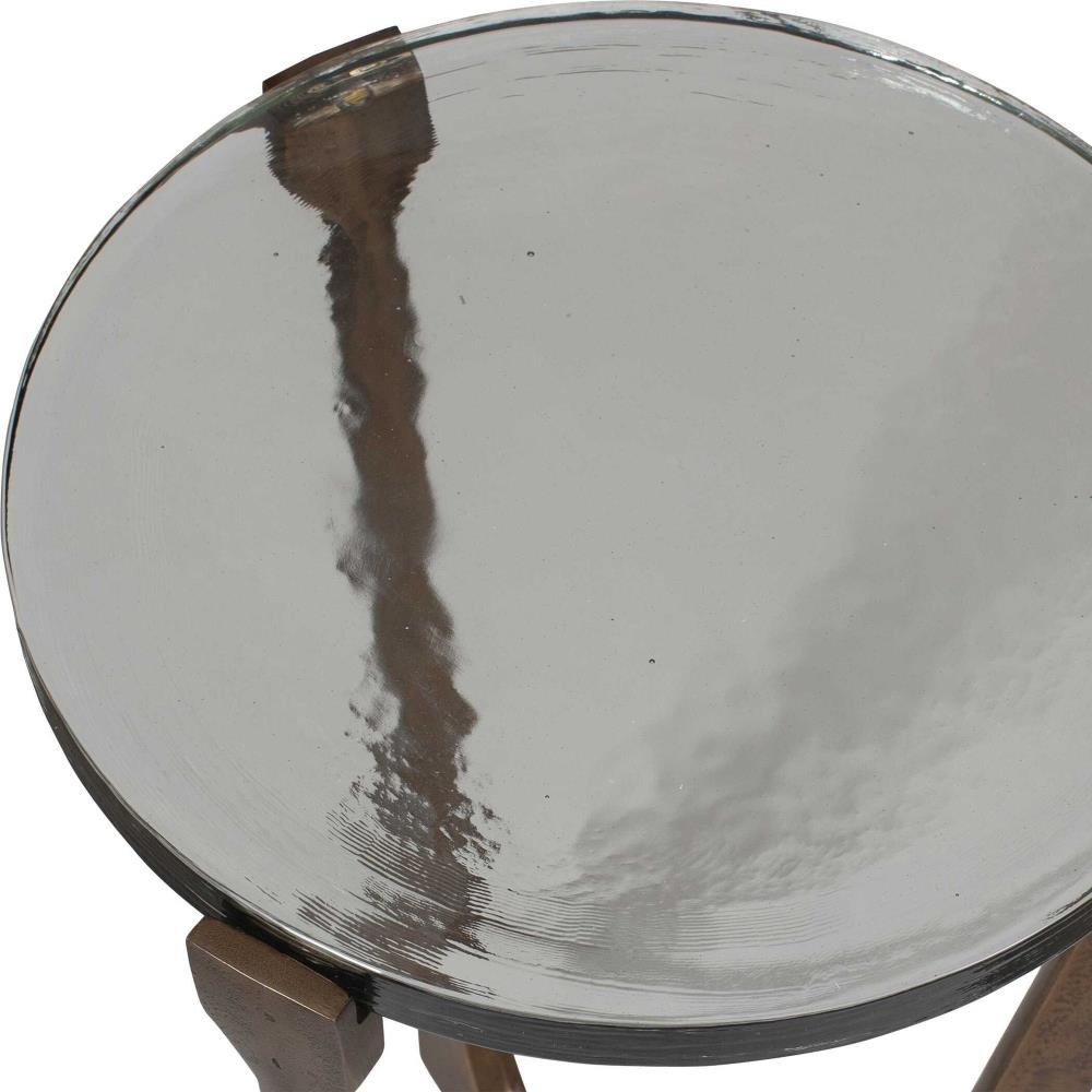 Crafted From A Combination Of Antique Brass Finished Cast Aluminum And Rich Cast Glass, This Accent Table Showcases Exquisite Craftsmanship. The Warm Tones Of The Brass Frame Complement The Unique Texture Of The Glass Top, Creating A Truly Captivating Piece. Suitable For Both Indoor And Outdoor Use.