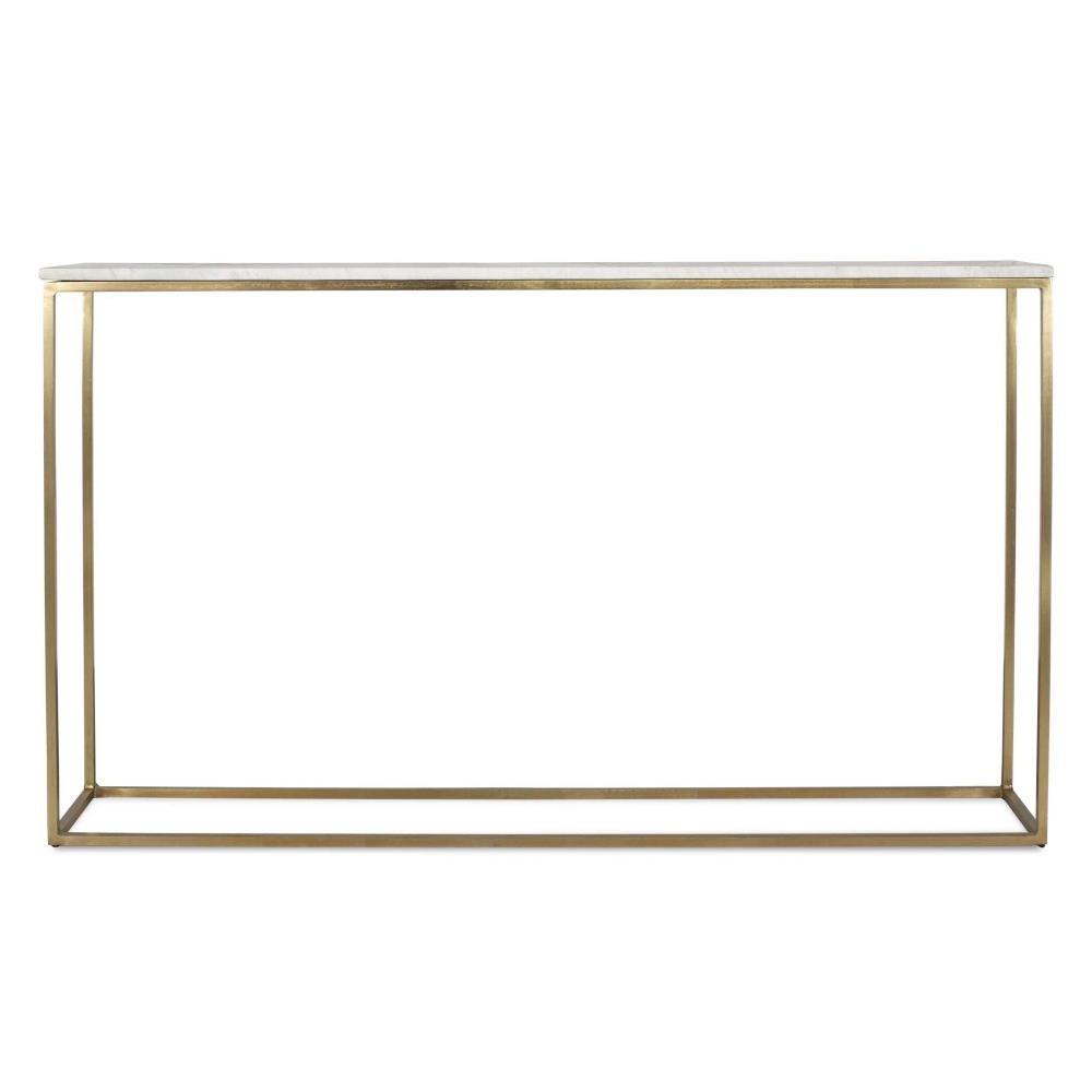Classic And Minimalistic, This Narrow Console Table Is Supported By Brass Finished Metal Legs And Complemented By A White Marble Top With Subtle Gray Veining. Due To The Nature Of Natural Stone, Every Piece Will Vary Slightly Ensuring Yours Is Unique.