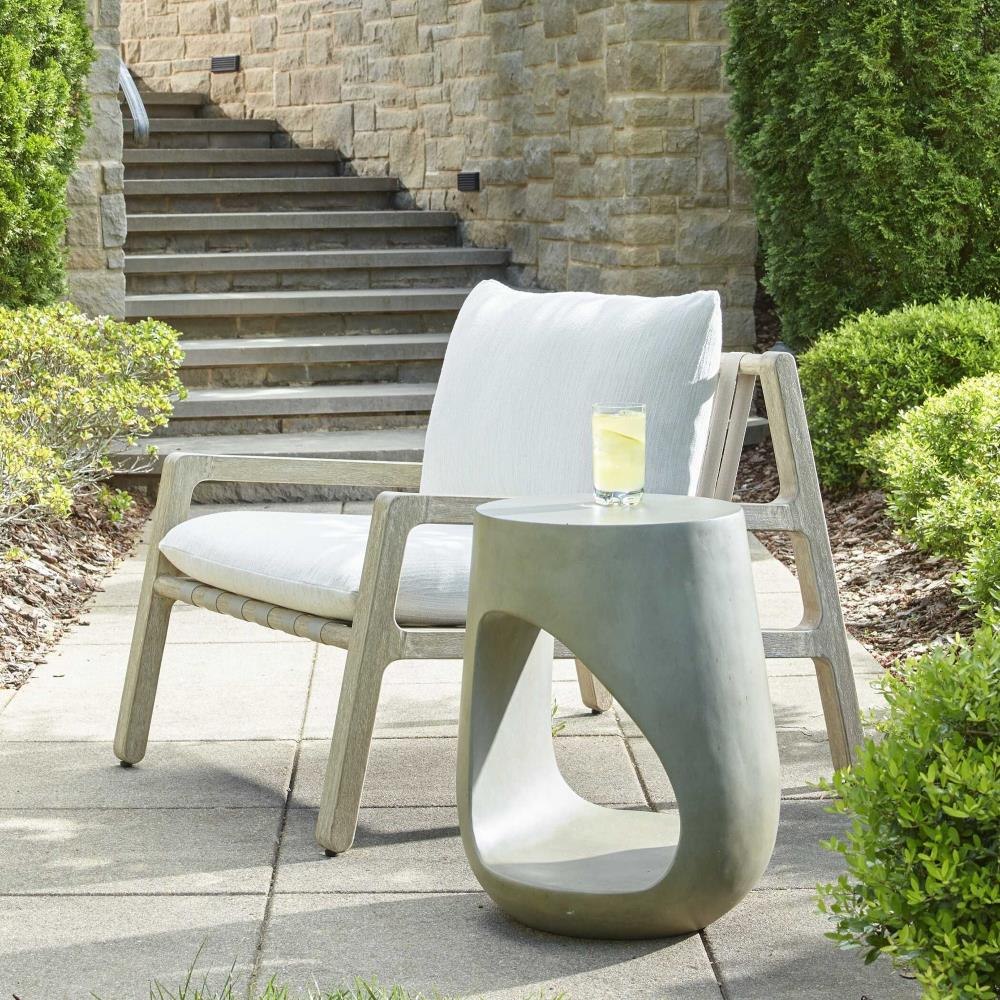 Modern Style Meets Function In This Outdoor Accent Table. Crafted From Warm Gray Glass Reinforced Concrete, It Features A Unique Cylindrical Shape With A Striking Cutout Detail. Suitable For Both Indoor And Outdoor Use.