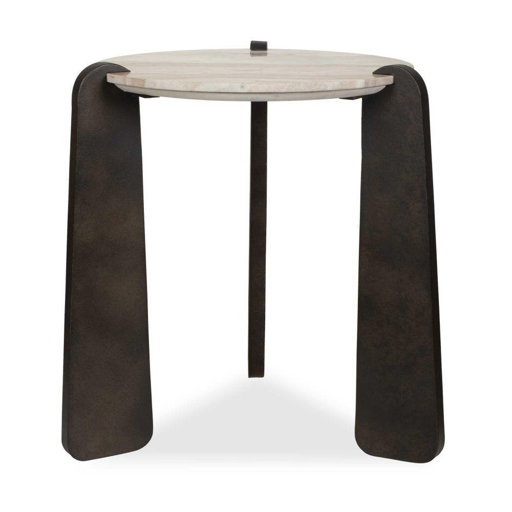 This Exquisite Side Table Features A Refined Marble Tabletop, Showcasing Beautiful Veining In White, Gray, Sand And Brown Tones. It Rests Upon Substantial Legs Crafted From Textured Iron, Finished In A Rich, Aged Dark Bronze. True To The Nature Of Natural Materials, Each Piece Will Have Unique Marbling And Veining Throughout.