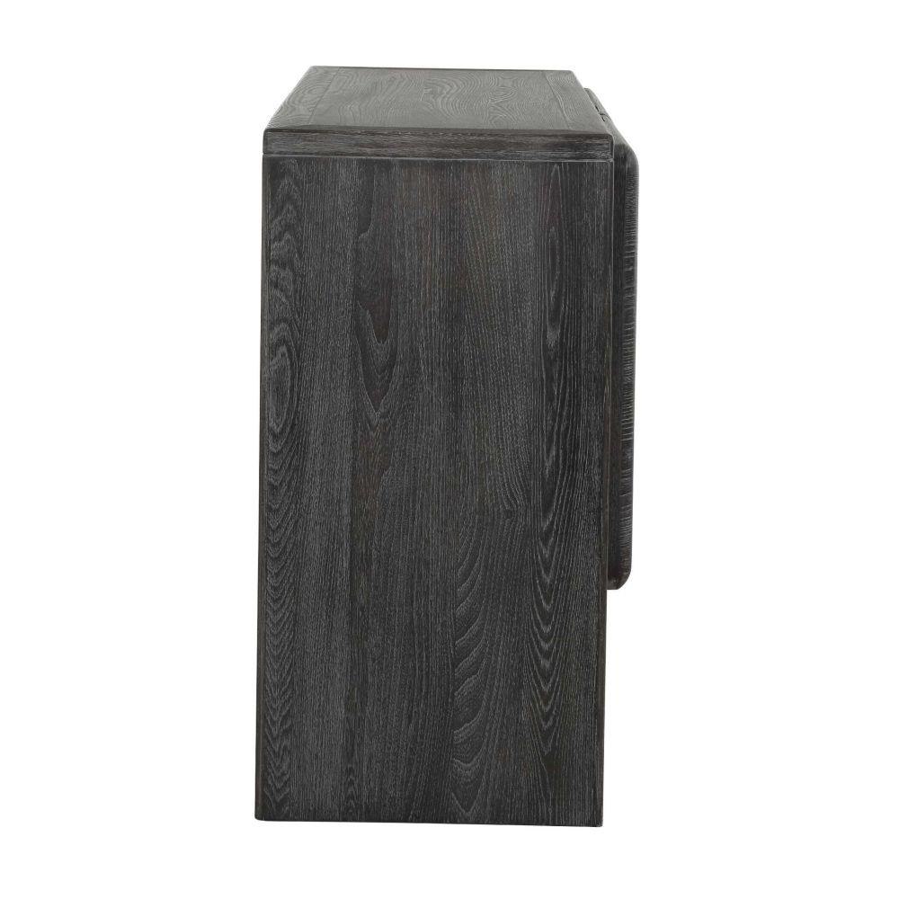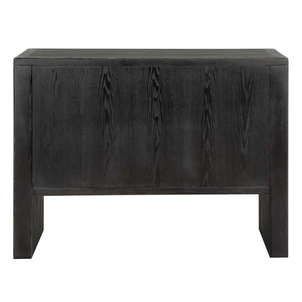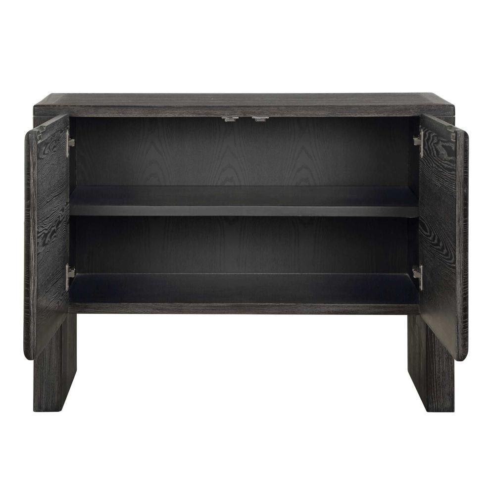 Expertly Crafted From Elm Wood And Elm Wood Veneer, This Two-door Cabinet Features A Rich, Dark Stain That Beautifully Enhances Its Natural Grain, Culminating In A Seamlessly Sleek Profile.