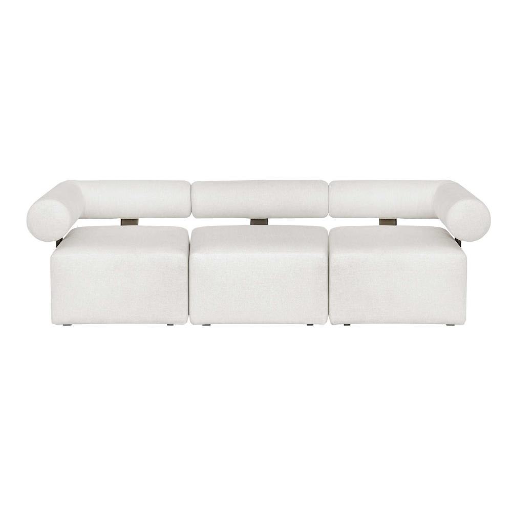 Create Your Ideal Outdoor Oasis With This Contemporary Modular Sofa, Featuring A Modern Bolster Back Design. The Sleek Java Black, Powder Coated Aluminum Support Suspends A Floating Back Pillow Paired With Plush Cushions. Upholstered In A Textured Oyster White Solution Dyed Acrylic Fabric Designed To Withstand The Moisture And Dirt That Comes With Outdoor Use.