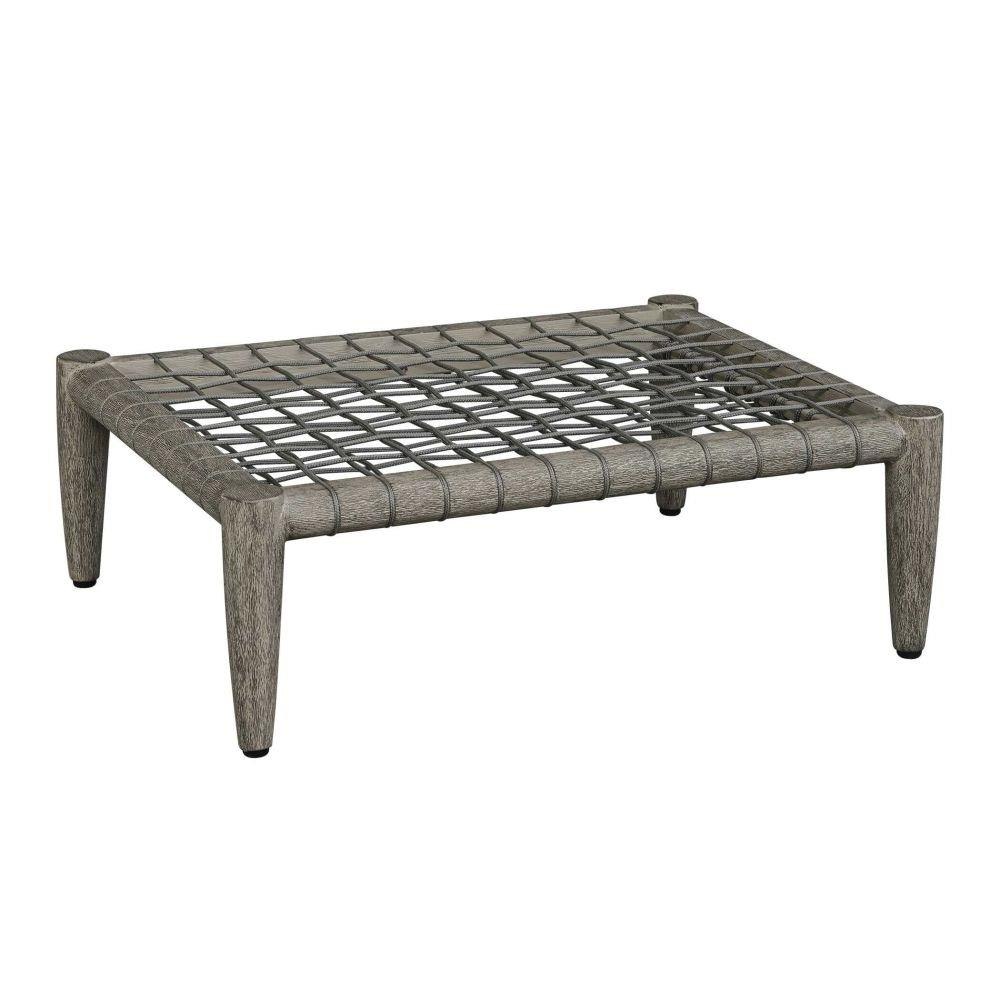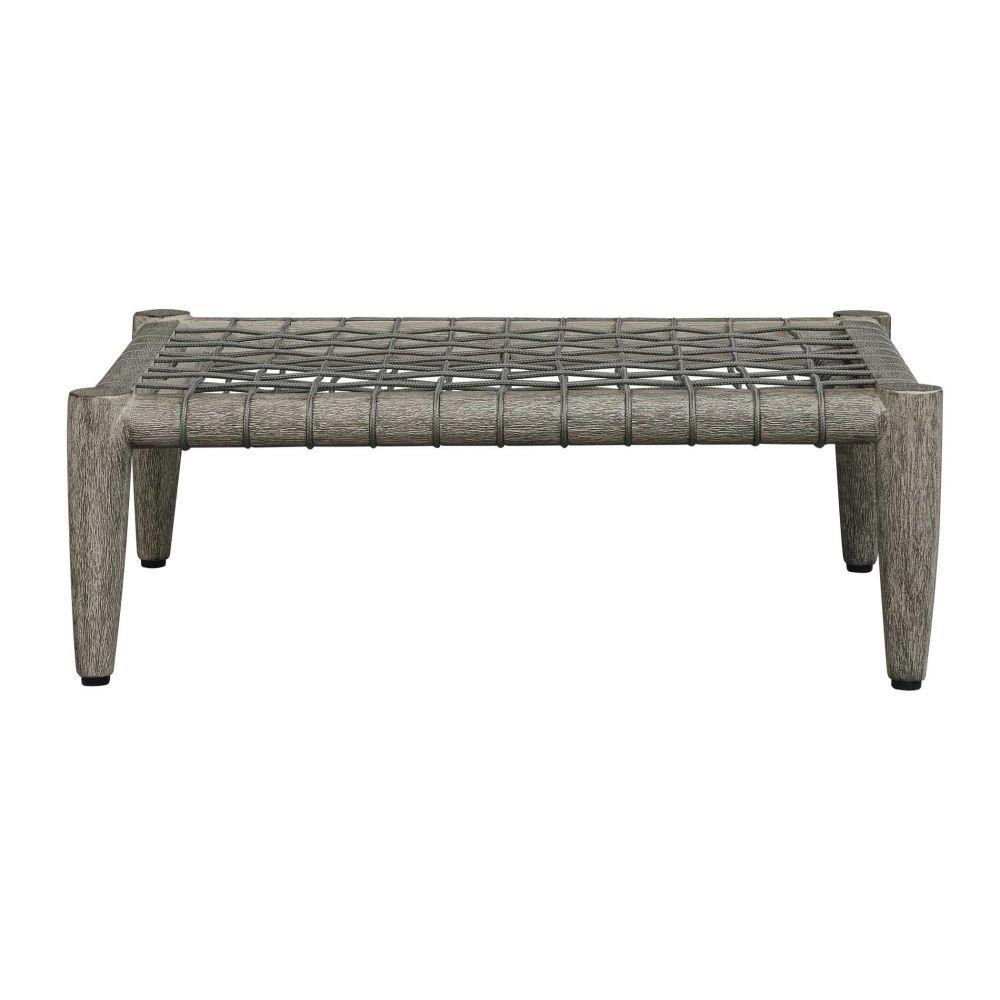 Crafted From Rich, Weathered Dark Gray Mahogany And Adorned With Hand Wrapped Charcoal Gray Rope Along The Sides, The Borneo Ottoman Offers A Touch Of Rustic Elegance. Oyster White Cushion In Solution Dyed Acrylic Fabric Provides A Comfortable Contrast To The Natural Wood And Woven Accents.