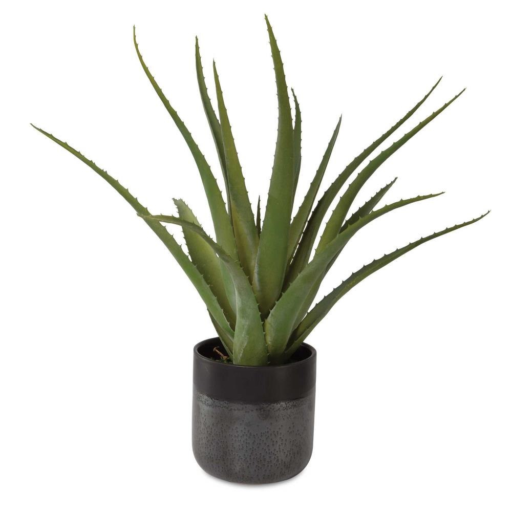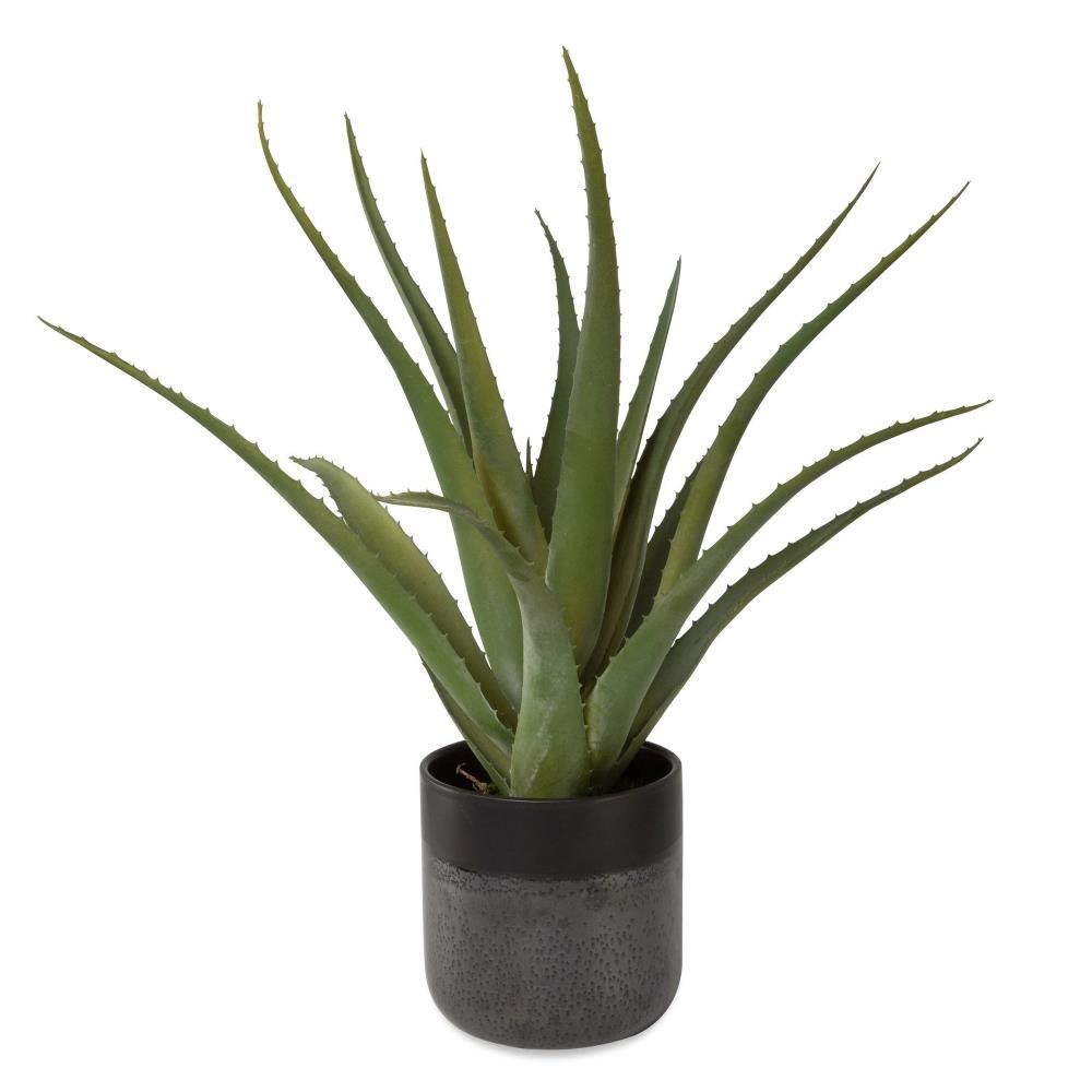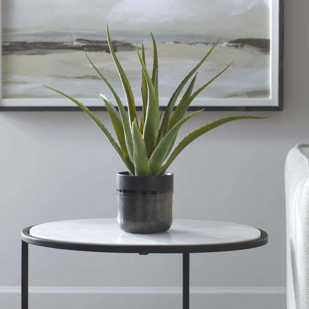 A Contemporary Ceramic Pot With Textured, Matte And Gloss Glazes Refreshes This Aloe Vera Accent Piece, Placed Over A Bed Of Preserved Moss.