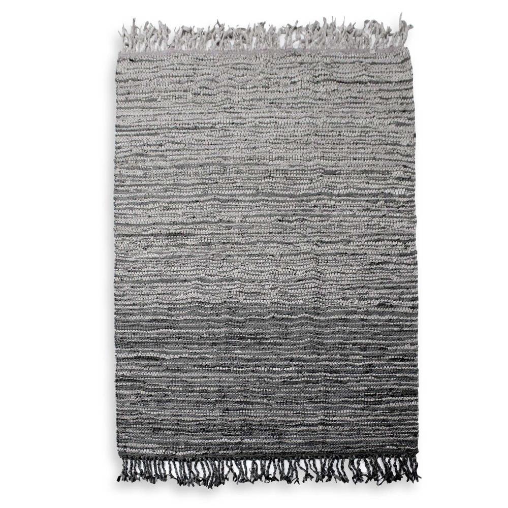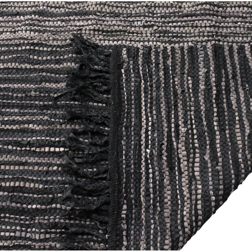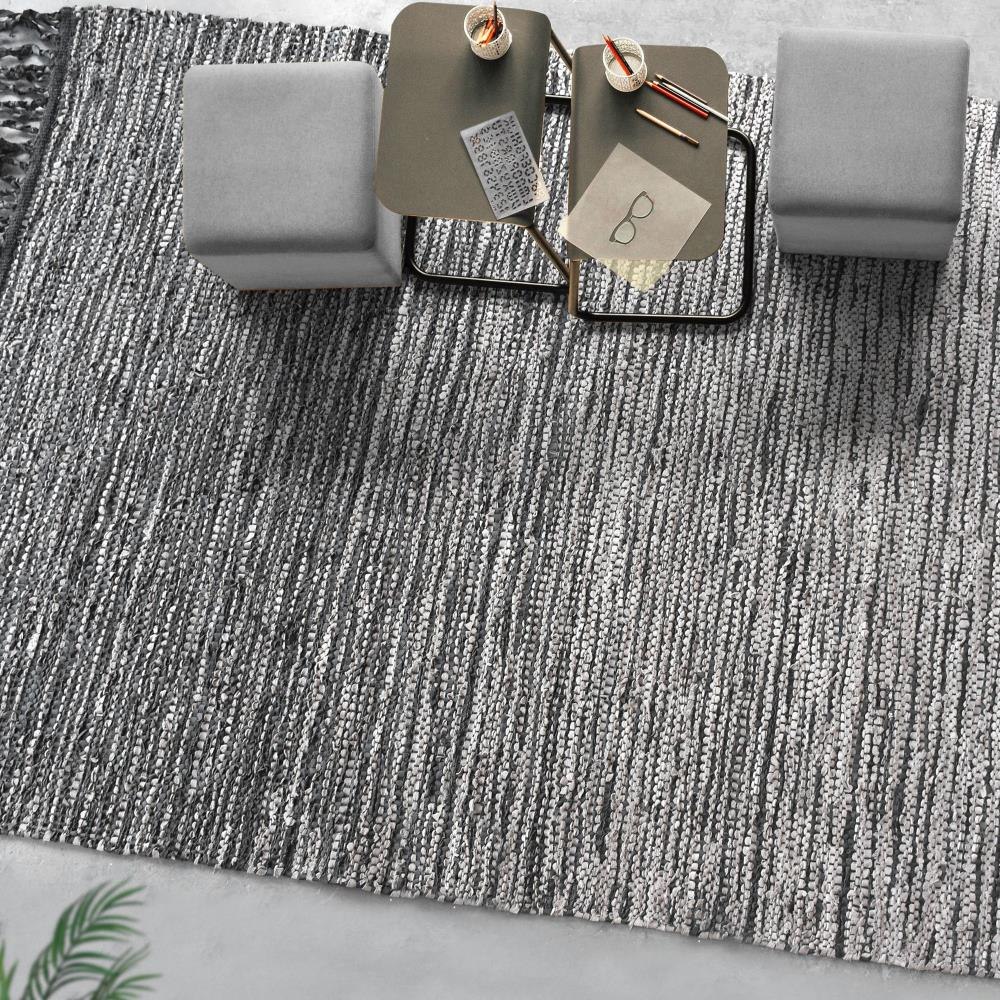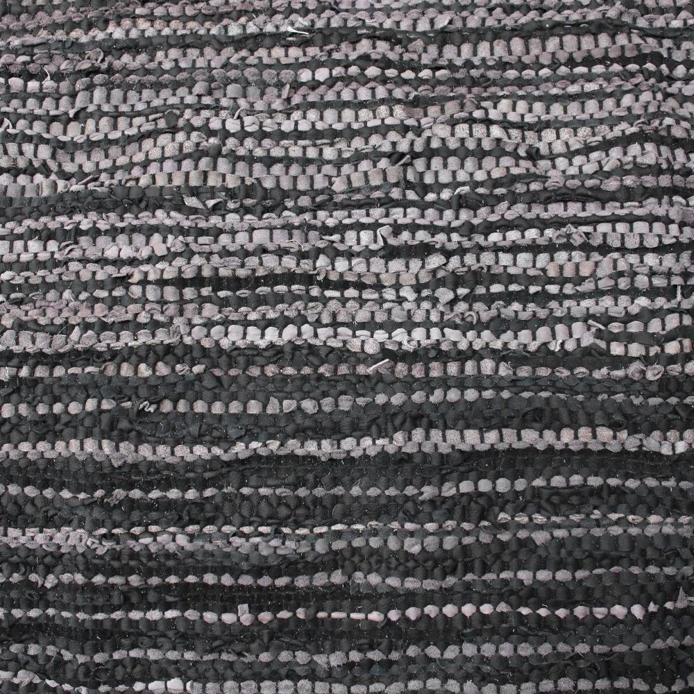 This Hand Woven Rug Features Rescued Leather In Shades Of Taupe And Rustic Charcoal Displaying An Ombre Effect.
